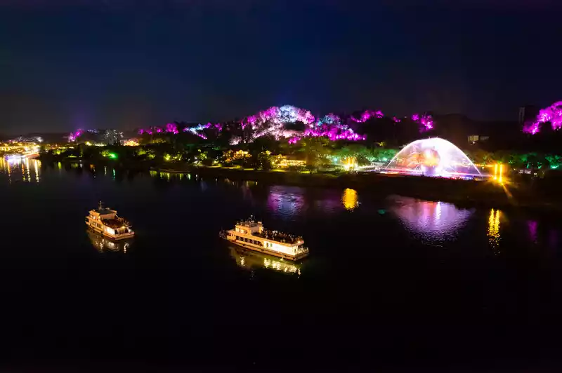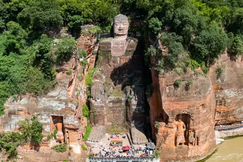 There are two main ways to visit the Leshan Giant Buddha, one is mountaineering, where you can see the Giant Buddha up close; The other is to take a boat, which will not dock on the side of the Big Buddha, but can face the Big Buddha on the river. If you haven't had enough fun during the day, you can also visit Lingyun Mountain or Sanjiang at night to feel the other beauty of the Leshan Giant Buddha Scenic Area. At night, Lingyun Mountain and the riverside are brightly lit, the river surface is sparkling, and there is a cool light show using modern light and shadow technology.