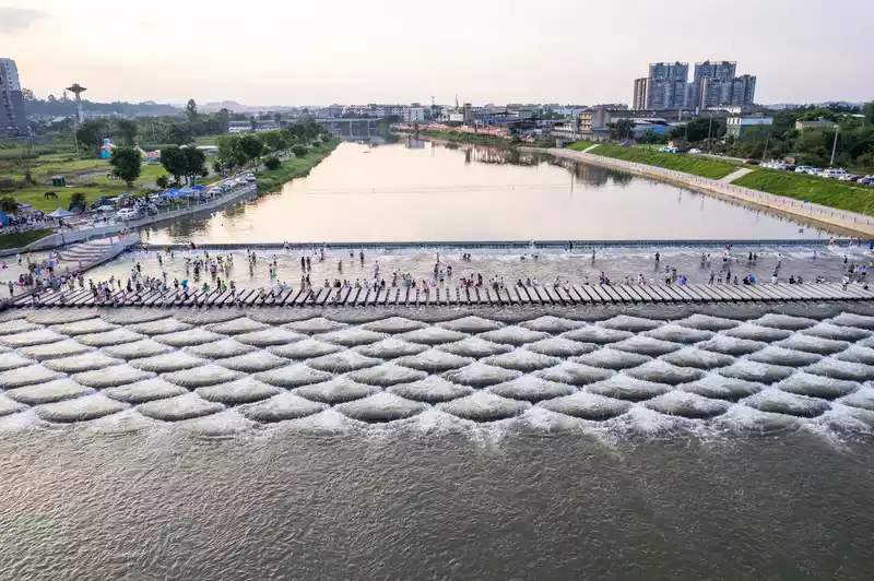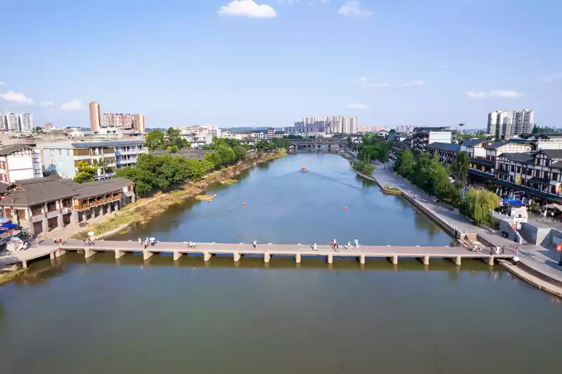 Suji Ancient Town is the "first town of stomping beef" and an ancient town with a long history of more than 1,400 years. A clear Emei River passes through the town, and the banks are covered with white walls, black tiles, wood carvings and brick carvings of Ming and Qing dynasties. There is also an ancient bridge on the Emei River, and the tourists who come and go seem to be swimming in the middle of the painting. There are all kinds of shops lined up here, small bridges and flowing water, as well as quaint stone pavements and wind and rain corridors. Down the river, there is also a fish scale dam. It is a summer darling and a water attraction loved by men, women and children of all ages. In the midst of coolness and laughter, you can get wet to your heart's content.