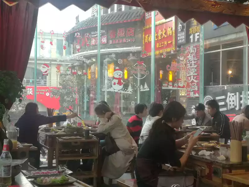 Xiaolongkan Old Hot Pot (Chunxi Road Store), classical style layout, spicy and fragrant taste, 2 o'clock in the afternoon, there are still many diners.