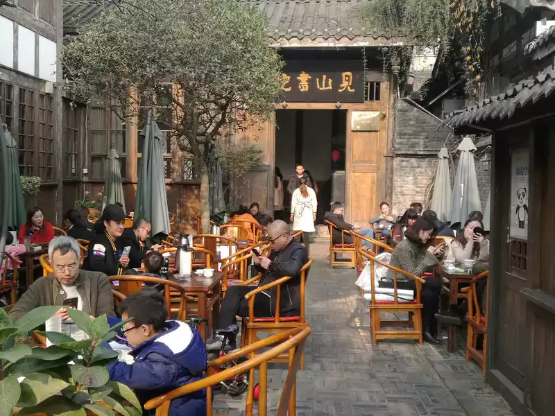 5. People's Park. Located in Qingyang District, Chengdu, it is a good place for locals to drink tea and chat and play mahjong. As part of the itinerary plan, the two rode bicycles together to experience the streetscape garden culture, drink Maofeng's large bowl of tea, and watch the ginkgo biloba leaves in the sky.