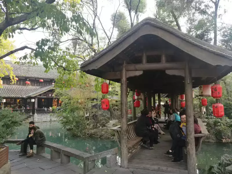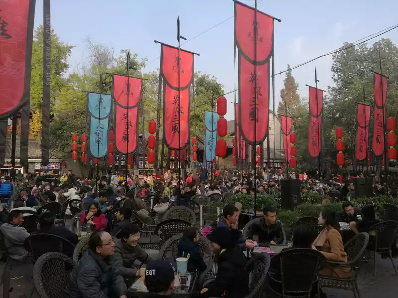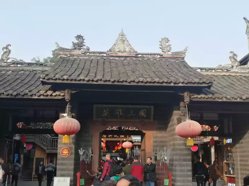 4. It is part of the Wuhou Temple Museum, located in Wuhou District, Chengdu, is an ancient commercial street that embodies the culture of the Three Kingdoms and the famous customs of Chengdu, integrating tourism, shopping, leisure and entertainment, and can be called the Sichuan version of the Qingming River Map. Looking at the big red lanterns hanging high, the black tea of Wuhou is set up at the dragon gate.