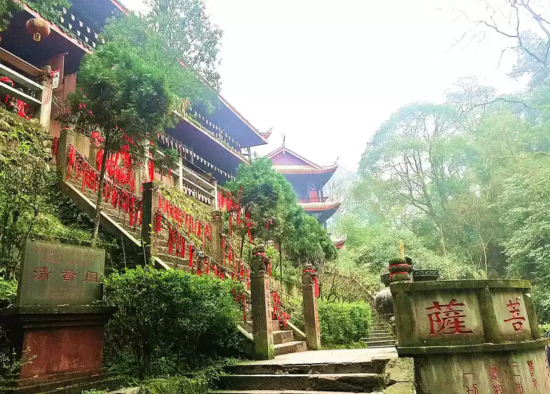 2. Mount Emei, located in Emei City, Leshan City, Sichuan Province, is one of the "four Buddhist" famous mountains in China, known as "Emei World Show". On the afternoon of December 5, visit Wannian Temple and Qingyin Pavilion in Emei Mountain Scenic Area. Surrounded by mountains and waters, the terrain is steep and the scenery is beautiful.