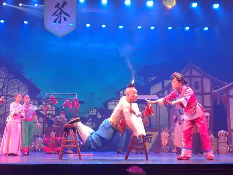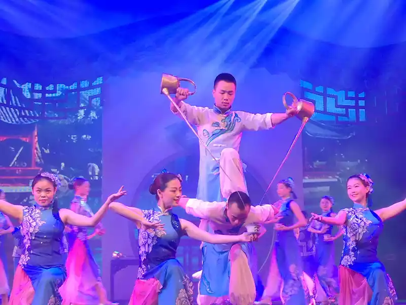 3. In the evening, the Emei Elephant City Grand Theater watched the theatrical performance of "Holy Elephant Emei", the scene was magnificent and shocking, "changing faces" and "close around, sketch programs and audience interaction, northern Sichuan big puppets, acrobatics, Emei martial arts, rolling lanterns and long-billed copper pot kung fu tea and other programs, so that everyone can carefully taste the unique folk customs of Sichuan in the appreciation of the skill performance with strong local characteristics!