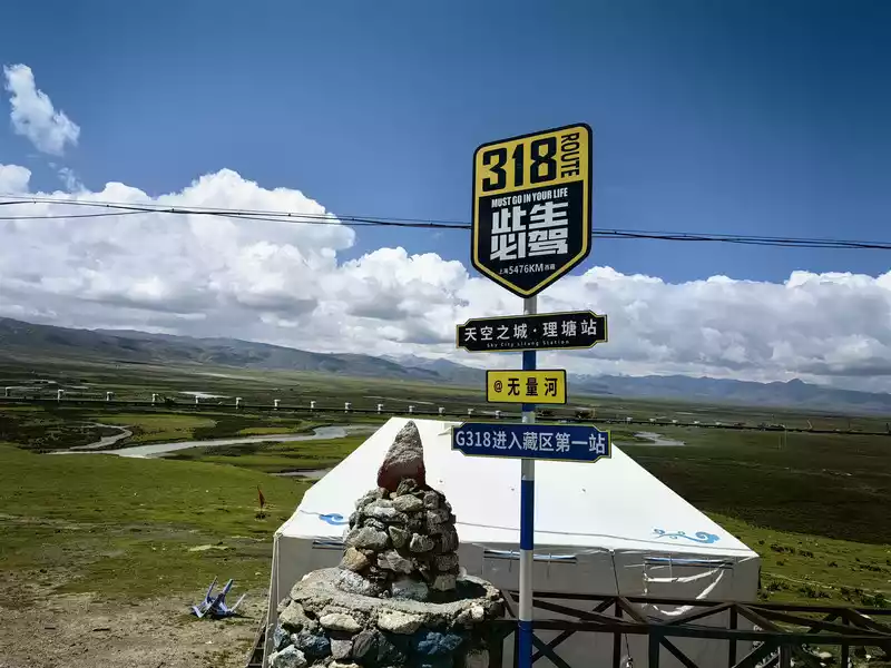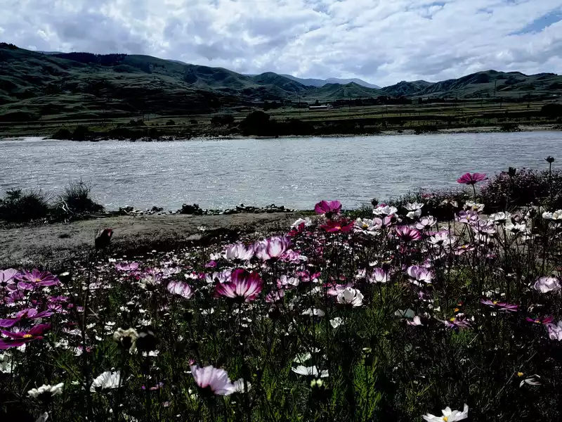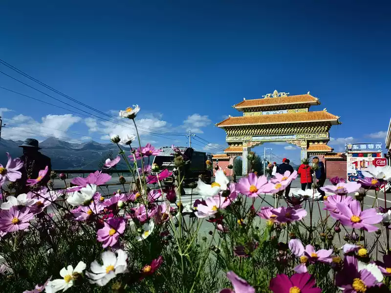 At more than 10 o'clock, we arrived at Litang County, which is known as the "City in the Sky" , at an altitude of more than 4,000 meters. The G318 line passes through the city, and its famous check-in points are the east and west gates.The Maoya Prairie is near the West City Gate, and he is rated as one of the six most beautiful grasslands, covering an area of about 251 square kilometers. The Wuliang River flows quietly in the grassland, and the surrounding mountains are surrounded by grasslands full of flowers. The cosmos around the Infinite River is huge. There is also Litang Temple at the check-in point, and we don't know anything about Tibetan Buddhism, so we give up.