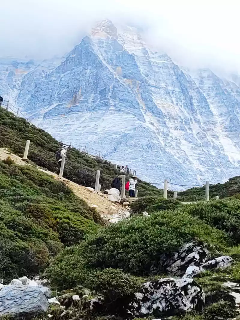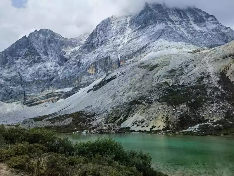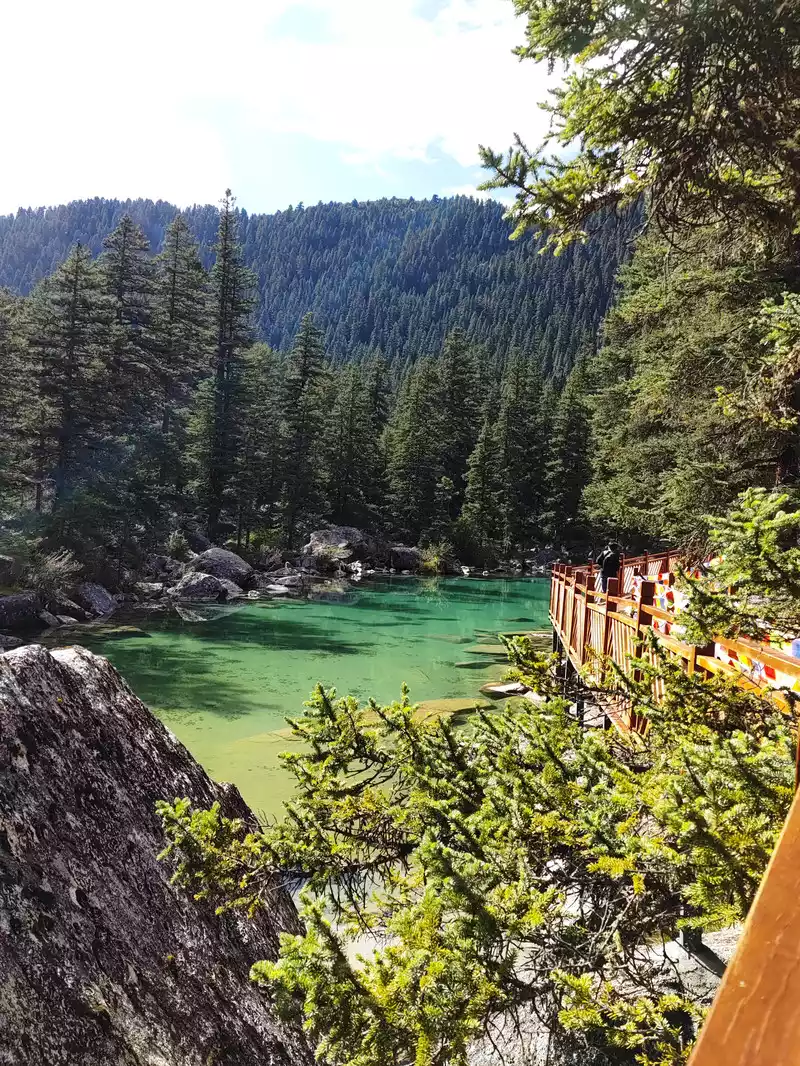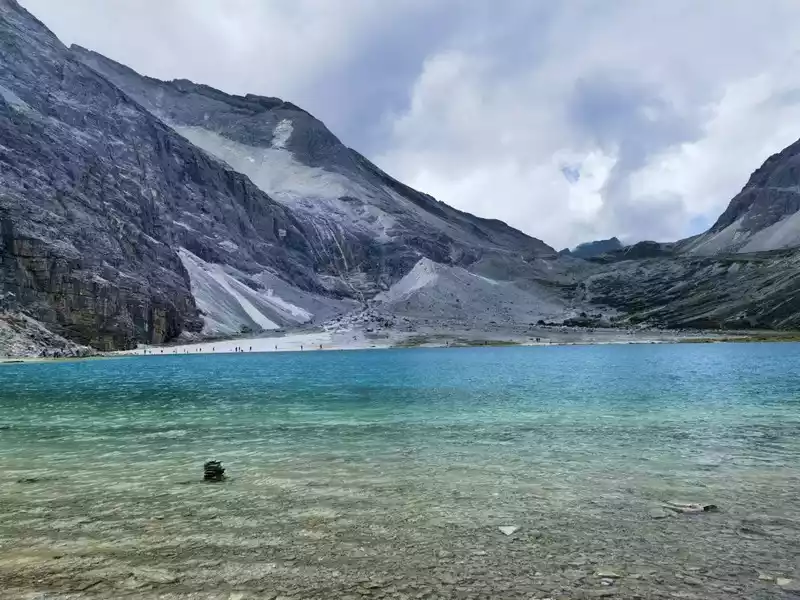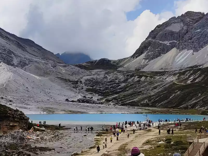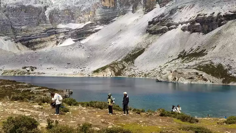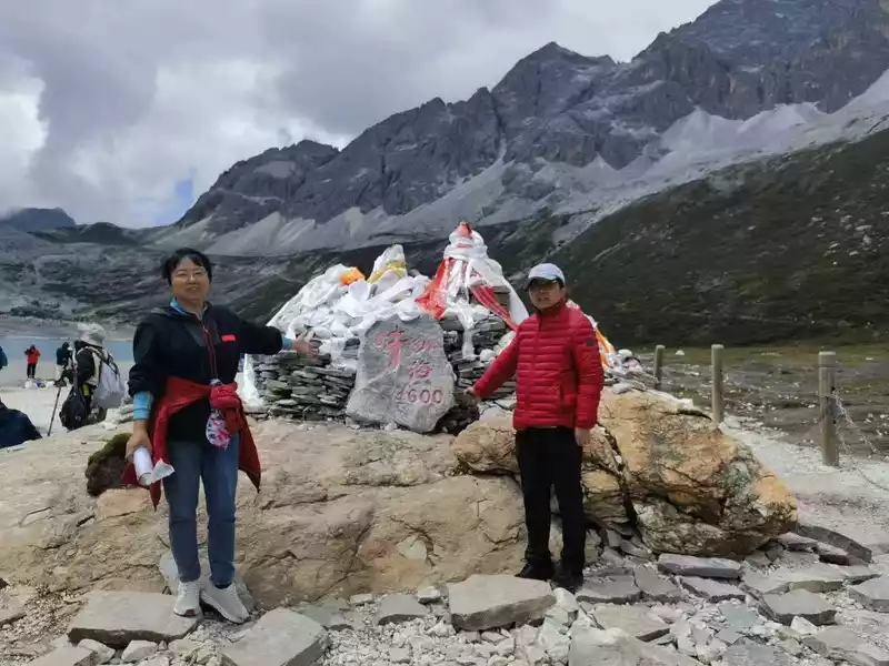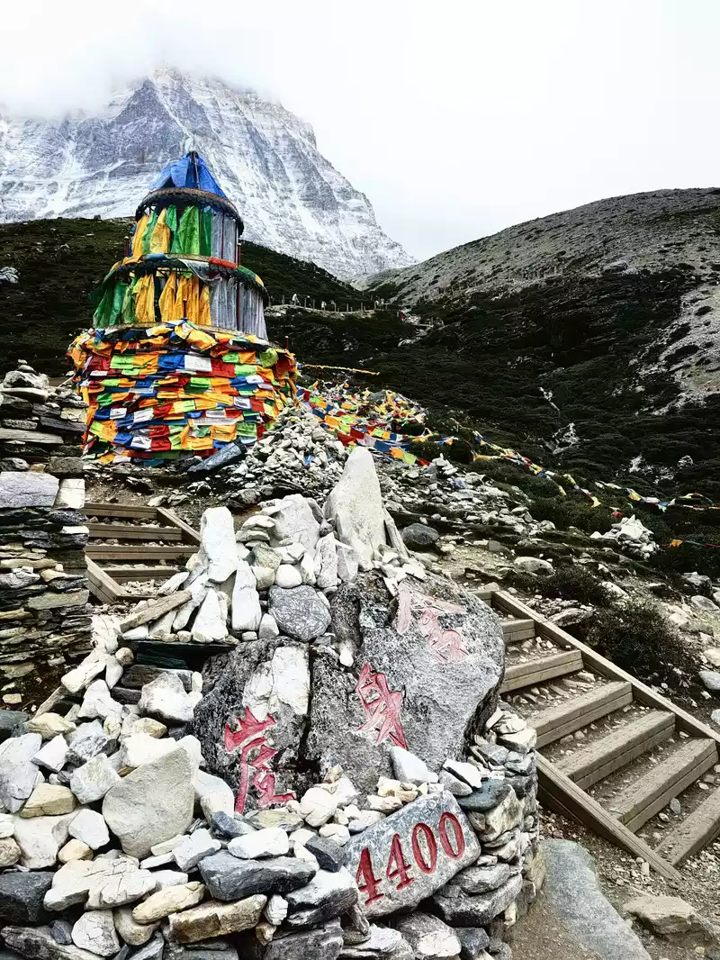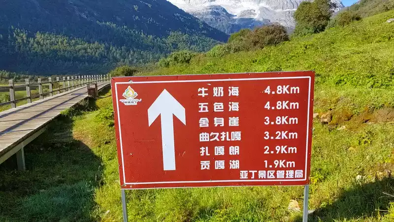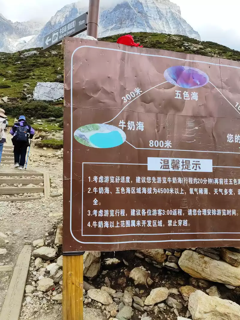 We rode up the mountain at half past ten, After about 40 minutes, we arrived at the Sashen Cliff not far away.From here to the milk sea, it is all a plank road, we climbed up step by step, and when we felt short of breath, we took oxygen to temporarily relieve it, and the two of us only consumed two cans of oxygen a liter during the whole climbing process. With the help of the tour guide, we triumphantly landed on the sea of milk and the 4,700-meter-high five-colored sea, feeling proud in our hearts, our eyes are in heaven, and our bodies are not in hell. The milk sea is large, and the lake water is light blue, which is particularly surprising against the backdrop of high mountains. The five-colored sea is divided into two small lakes this season, which are dark at first glance, but with the change of the angle of sunlight, the color also changes, and it is very beautiful against the backdrop of tall mountain peaks. The service facilities of the entire Daocheng Aden Scenic Area are still relatively complete, and there are several toilets and lounges in the middle. Hot water is also available in the lounge at Sacrifice Cliff. We had lunch at the five-color sea lounge (self-hi hot pot and bread), and we brought our own boiling water to the mountain because we were worried about the temperature of the hot water at high altitudes. When we returned to the Luorong Cattle Farm, it was half past 4 p.m., and we were exhausted and could no longer go to see the Pearl Sea in the short term. It was already 6 p.m. when I returned to the hotel by sightseeing bus. We completed the long line of Daocheng Aden in eleven hours. Soak your feet in hot water after returning to the hotel to relieve fatigue.