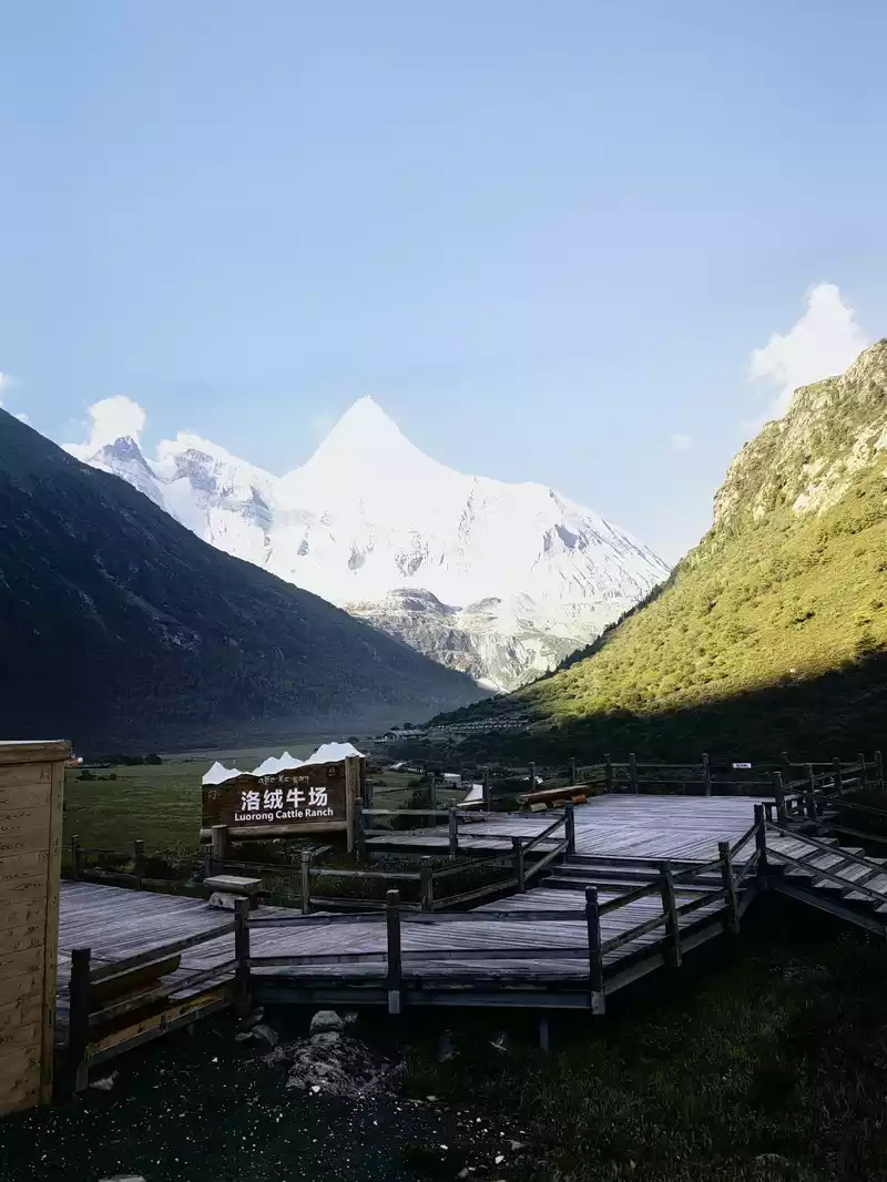 DAY 5: On September 7th, I spent a whole day visiting Daocheng Aden Scenic Area today (this was also the only day on this trip without driving). I got up at 6 a.m. and ate some BYO food. Bring oxygen and food, depart at 6:40, and we arrived at the ticket gate of the scenic spot at 7 o'clock. When we arrived at Zha Guanbeng, we were not in a hurry to go to Chonggu Temple, because we heard from the front desk girl that we definitely couldn't rent horses, because there were only 120 horses. We came to Daocheng Aden with the attitude that it would be difficult to go as far as we could and that it would be difficult to board the sea of milk on our own. At this time, a Tibetan guy asked if we needed a tour guide, and we talked to him about our concerns, and he said that if he was used as a tour guide, he would definitely be able to rent a horse, and he would pay the bill after reaching the top. We immediately followed him to Chonggu Temple and took a sightseeing bus to Luorong Cattle Farm. When we arrived at the Luorong Cattle Farm, the guy immediately ran to the rental point a few hundred meters away to line up, and we followed behind to the place where the horse was rented. After arriving there, we realized that there were only 30 horses a day, and the passengers were sent to the area near the Sheshen Cliff in four times, which should be 120 times, not 120 horses. Fortunately, we rented the third batch of horses for 300 yuan/horse one way. There is an interval of one to one and a half hours between batches, and you can take advantage of this gap to carefully appreciate the Luorong cattle farm. The turquoise grassland is shining with golden light under the sunlight, the river is flowing quietly, the Gesang flowers are blooming on the grass, and in the distance you can see the tall Yangmaiyong (Manjushri Bodhisattva) snow-capped mountain, and if you are lucky, you can also see Xiano Dorji (Vajra Hand Bodhisattva), a plank road leading to the milk sea stretching into the distance.