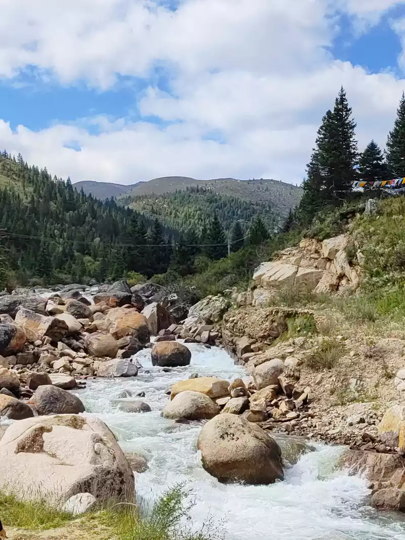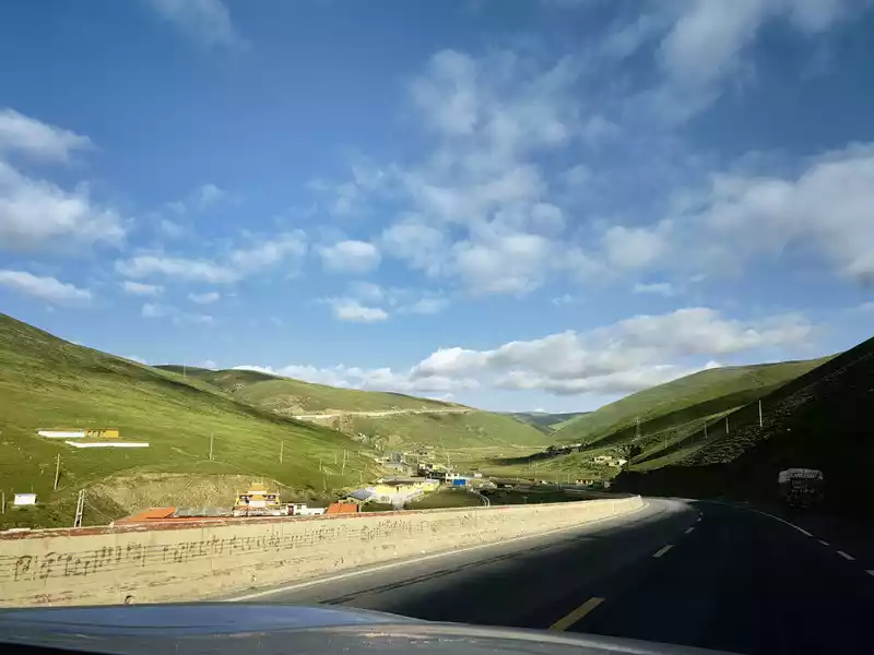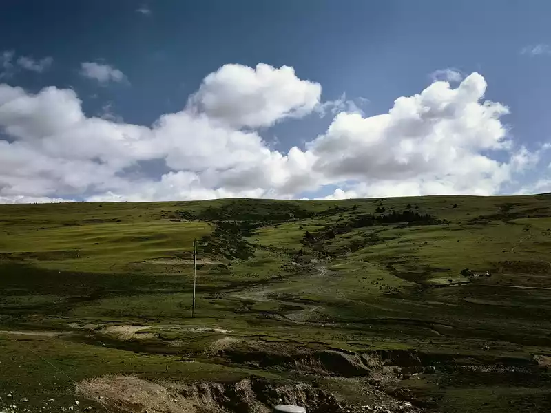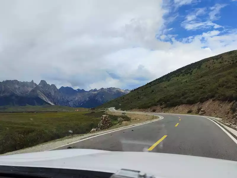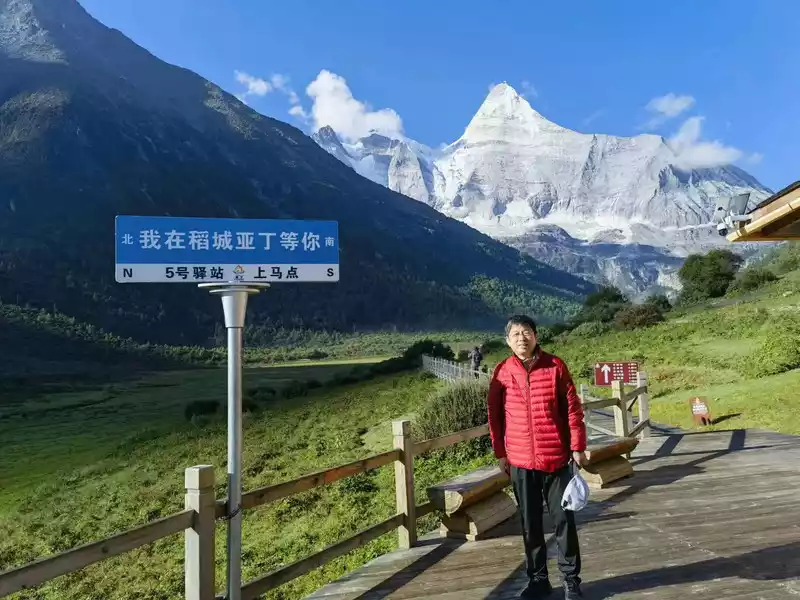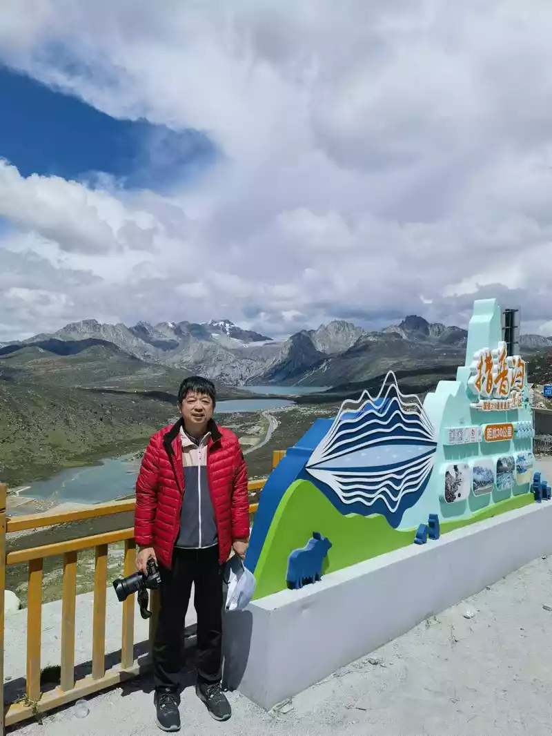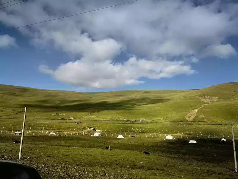 DAY6: September 8. Today's route: Daocheng Yading - Cuopugou - Batang, 400 kilometers. Yesterday's long journey in Daocheng Aden made our legs sore. Therefore, we decided not to take the short line and continue our trip to Tibet. After breakfast, at 7:20, we set off for Batang. Follow the road G227 back to Litang the day before yesterday, and then take G318 to Batang. There are two roads in the middle, one is G318 to Batang, and the other is G549 to Grene South Line to Batang. Considering that the G318 is a relatively mature route and suitable for people of our age, we chose the G318. On the way back, we passed through the "red grassland" and saw that the nearby grass was still green, so we didn't go to see it. After passing Haizi Mountain and Rabbit Mountain, I was condescending, and I saw the vast Maoya Prairie, and the huge contrast of the scenery made me feel particularly happy. Walking on the G318 section from Litang to Sister Lake, you can't feel that you are on the Qinghai-Tibet Plateau at all, just like walking on the grassland of Inner Mongolia, with green grass, high clouds, small rivers winding, and yaks grazing quietly. When I was approaching the Sister Lake, because of the road construction and temporary traffic control, I took this opportunity to check in at the Sister Lake Observation Deck. After checking in, the car was allowed to pass, and we passed smoothly. Not far after the sister lake, on the right side of the road is the visitor center of Cuopugou, we didn't notice at the time, we drove in along the road signs, the road conditions inside were not good, and the scenic spot was under construction. When we arrived at the gate of the scenic spot, the railing intercepted us, we explained that we did not notice the situation of the visitor center, and the guard asked us to call the visitor center, transfer the ticket money, and after receiving it, lift the pole and let us in. After passing the Zhangde grassland, we couldn't continue to drive in, we had to take their battery car (of course, it costs money) to enter the lake (or hike in by ourselves), we took the battery car to Cuopu Temple, we were not interested in the temple. Since the driver is Tibetan, he can only ask for a general tour route. We took a stop back to Kangzhulatso, asked about the time of the last bus, and went by ourselves. There were few tourists along the way, and we only met 7~8 tourists. But the scenery of Kangzhula Cuo and Zhima Yongcuo gave us a surprise, the color of the water of these two small lakes is actually comparable to that of Jiuzhaigou, but the area of the two small lakes is too small to be compared with Jiuzhaigou. Cuopu Lake is large, we walked along the north shore of Cuopu Lake to the south bank, followed the road signs to the route of the battery car, saw the battery car, waved and stopped, sent us to the transfer point, it was already 5 o'clock in the afternoon, on the way back to G318, we saw the Zhangde grassland under the sunset, the golden yellow against the green background, reflected on the water, beautiful, Cuopugou was worth the trip. We arrived in Batang at half past seven in the evening.