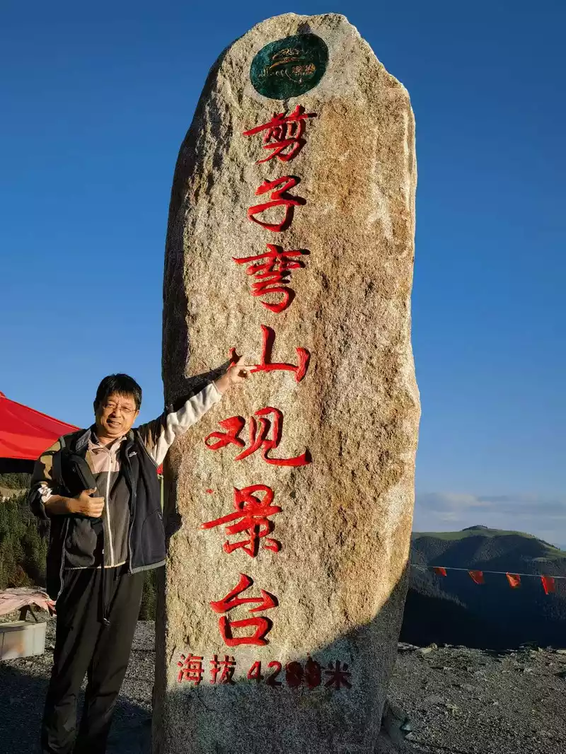 DAY4: September 6th. Today's route is Yajiang-Litang-Daocheng Aden, 366 kilometers. At 7 o'clock in the morning, we set off when it was still bright. Today we have to pass through the eighteen bends of the heavenly road, and as soon as we hear the name, it is a challenge for us who have been driving on the plains for a long time. When we arrived at the "Eighteen Bends of the Heavenly Road", the sky was already bright, fortunately, there were not many large trucks, we could often take advantage of the road to turn sharp corners, which is the advantage of getting up early and rushing, there are not many cars, it is not easy to get stuck in traffic, and it is easy to drive. I used to see G318 traffic jams on the Internet, and I was always very worried, afraid of being stuck on the road, so we even prepared quilts and thick down jackets. The mountains, grasslands, and canyons along the way are charming under the sunlight, which is no less than Xindu Bridge. We stopped at the Scissors Bend Mountain Observation Deck, Xiong Zongka, Nimagong Mountain and Kazila Mountain Observation Deck, climbed high and looked far away, and experienced that we could not enjoy the breadth on the plain. However, due to the unclear markings of the site, many mountains have not been able to distinguish the specific location of these famous peaks, and I hope that those who come after them can do their homework and give some guidance. The altitude of these observation decks is about 4,000 meters, and we have no high reaction.