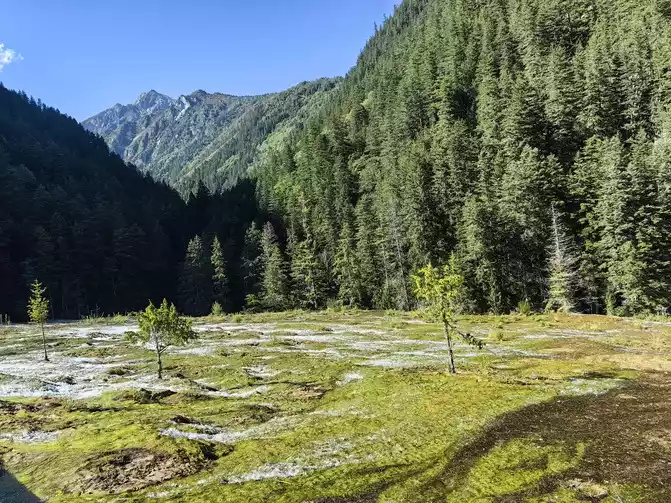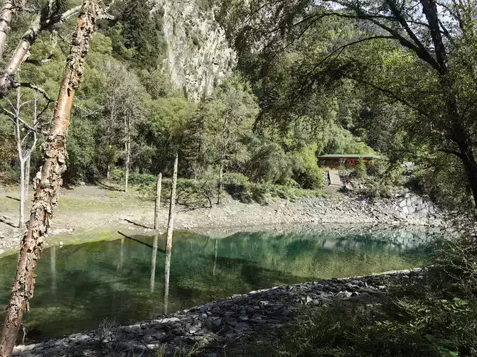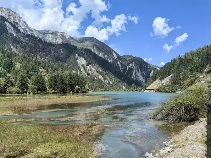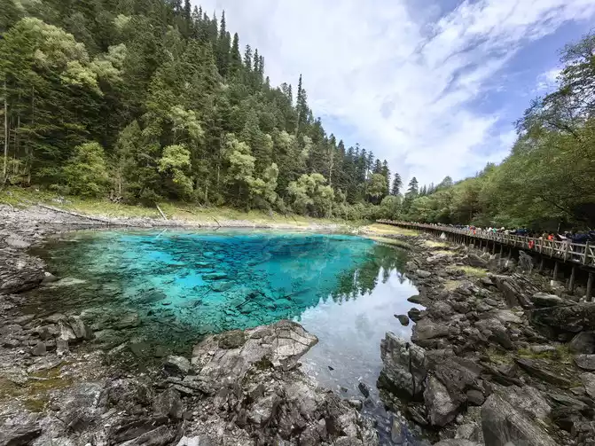 Panda Sea is a glacial dammed lake with an altitude of 2,574 meters, named after pandas operating here. Under the sunlight, the ripples of the Panda Sea reflect brilliant colors, giving people a sense of confusion.