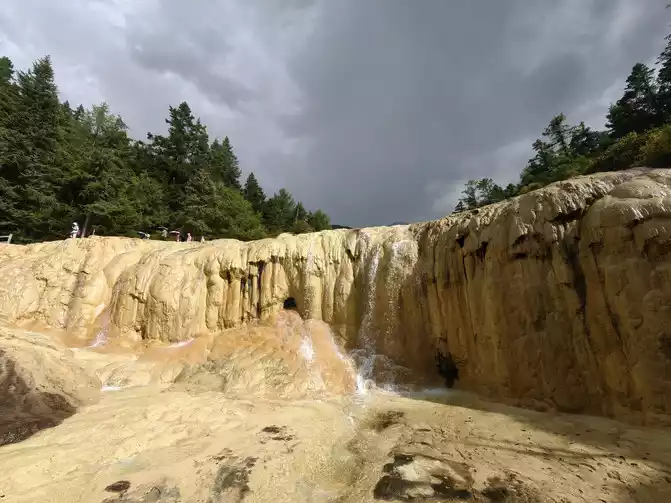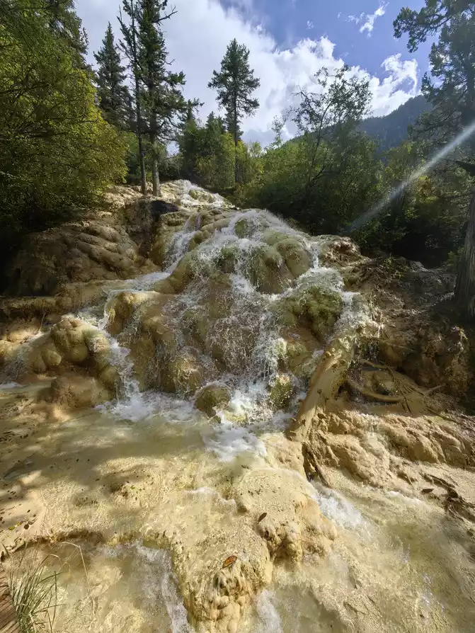 golden beach, a yellow stone wall suddenly appeared in front of me, which is the world's longest travertine collapse wall.The rushing water flows down from the embankment and falls on the travertine wall into a magnificent travertine waterfall, which is very spectacular.