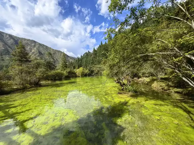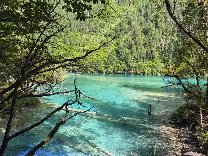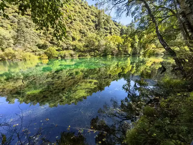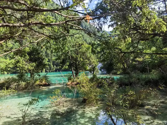 Shuzhenggou is the main ditch of Jiuzhaigou and the gate of the beautiful scenery of Jiuzhaigou. The whole ditch is 14 kilometers long, with more than 40 lakes of all kinds, accounting for about 40% of all the lakes in Jiuzhaigou Scenic Area. Known as the epitome of Jiuzhaigou, there are magical and mysterious lakes, colorful beaches, primitive mills and trestles dotted with seas and majestic waterfalls, which are dizzying and can't help but admire the magic of nature.