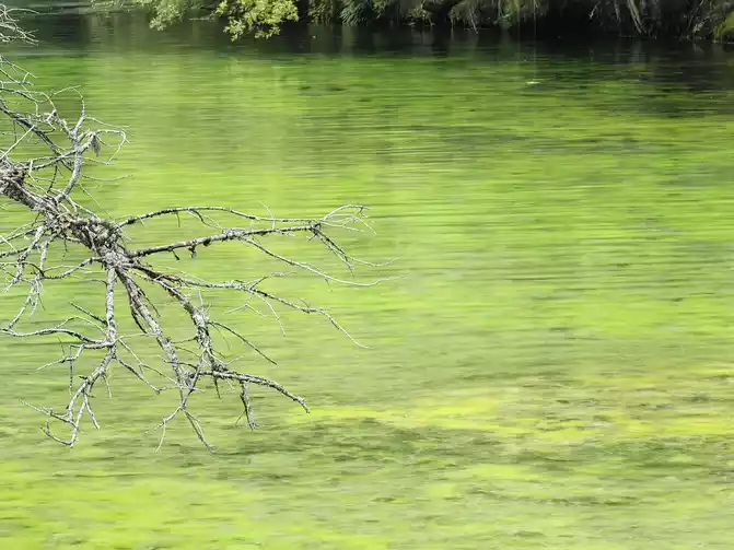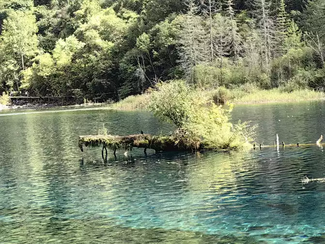 There is a peculiar landscape in the Arrow Bamboo Sea, that is, there are some calcified dead wood in the lake, and the strange thing is that sometimes the dead wood is half out of the water, and there will be new saplings on it to take root, which is called rotten wood renewal, or dead wood in spring, or regenerated trees, which has become a major feature of the Arrow Bamboo Sea.