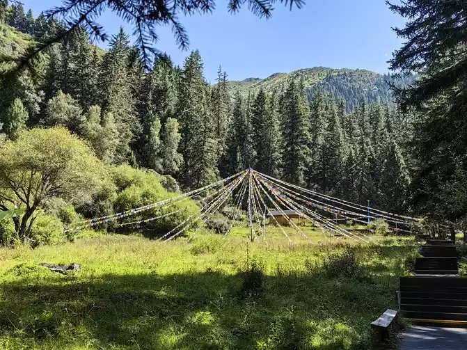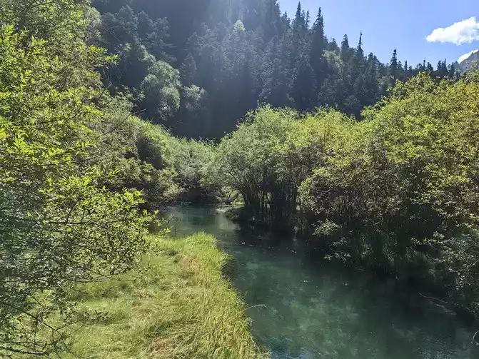 The primeval forest is at the southernmost tip of Jiuzhaigou, at an altitude of 2,930 meters, and the vegetation is dominated by various firs and spruces, and the air is fresh, which is a natural oxygen bar.