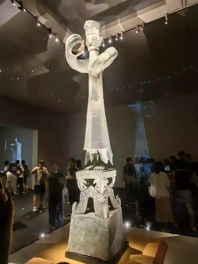 Sanxingdui cultural relics are precious cultural heritage of mankind, and they are one of the most historical, scientific, cultural and artistic values and ornamental cultural relics groups in China. Among these ancient Shu treasures, there are many bizarre and bizarre bronze shapes, including a 2.62-meter-high bronze Dali man, a 1.38-meter-wide bronze mask, and a bronze sacred tree as high as 3.96, all of which are unique and unprecedented. The gold vessels represented by the brilliant golden staff and the jade vessels represented by the border zhangs full of patterns are also rare treasures that have never been seen before.