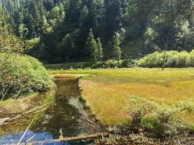 grass sea is 2910 meters above sea level, a semi-swamp lake, the lake surface is slender, there are many colorful grasses and flowers growing in it, and flowers and plants of various colors gather in the grass sea to form a special scene of fragrant grass. The green grass in the water is green, swaying and colorful, and waterfowl swim leisurely. During the blooming season, there will be various flowers blooming with a strong fragrance.
