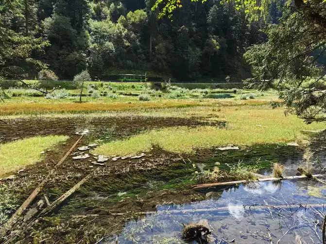 walked on the wooden plank road, breathing fresh air, with gurgling water under his feet and dense forests around him, and his mood was particularly comfortable. Walking all the way, I stopped and unknowingly arrived at the Swan Sea.