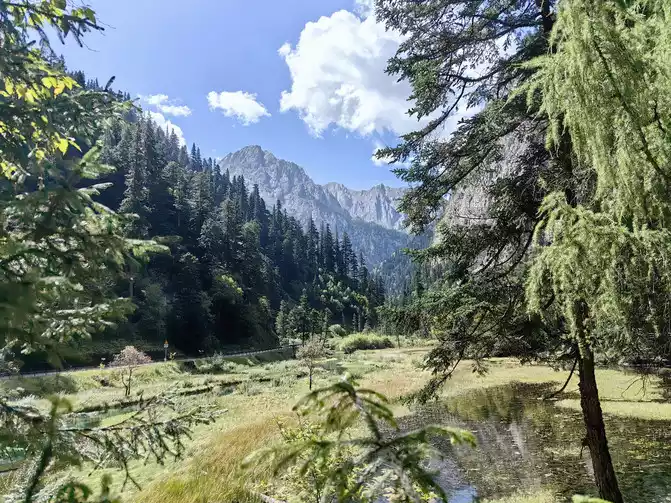 The Shenxian Pond Scenic Area is located in Jiuzhaigou County, the southern section of the Minshan Mountains on the northwest plateau of Sichuan, facing Jiuzhaigou from a distance, and is called "Nenen Sangcuo" in Tibetan, which means the place where fairies bathe.The entire scenic spot is surrounded by vast and boundless primeval forests, surrounded by steep terrain, with more than 10 peaks above 4,000 meters above sea level, with peaks stacked, deep winding streams, and clouds and mist, giving people an ethereal, mysterious, quiet and secluded feeling.