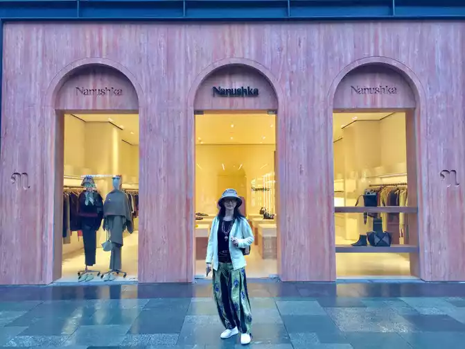 European fashion brands, the most in Sichuan. The buildings are mixed with rare flowers and plants, as well as tables, chairs, umbrellas. The store design is simple and fashionable, the color is pure,
