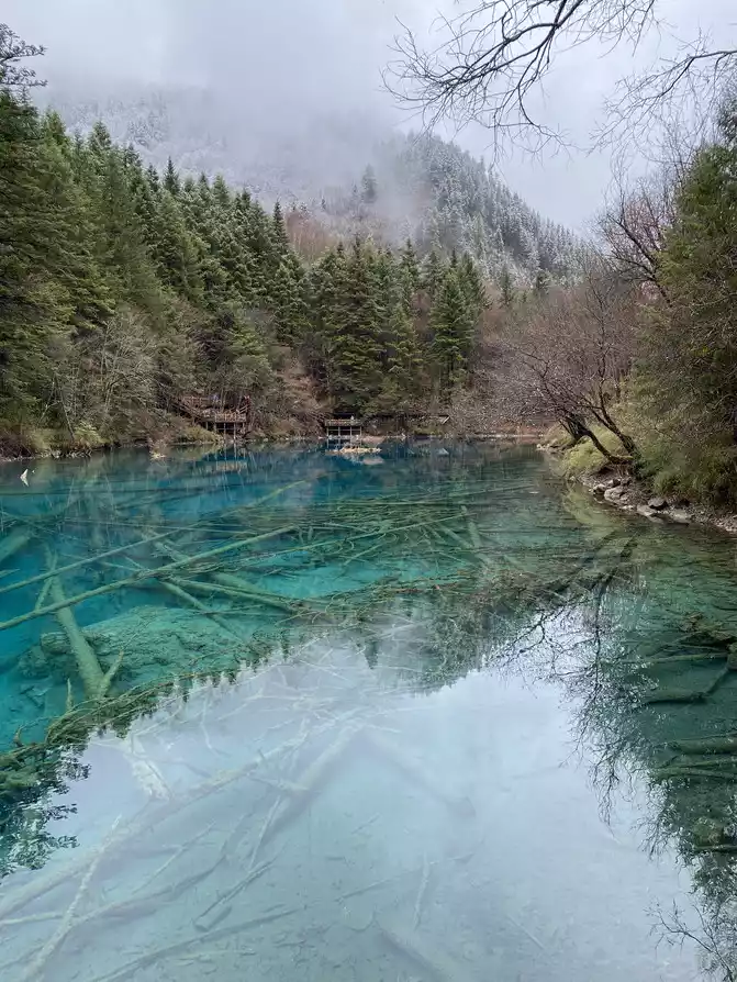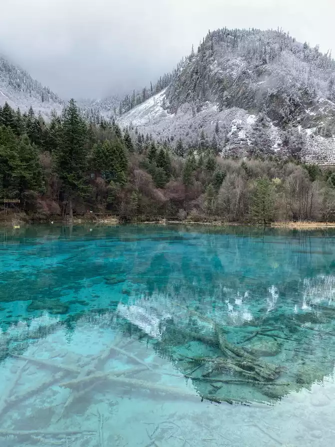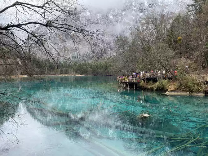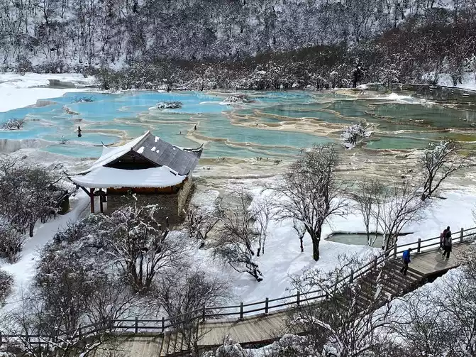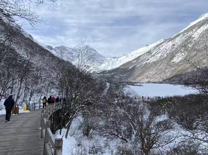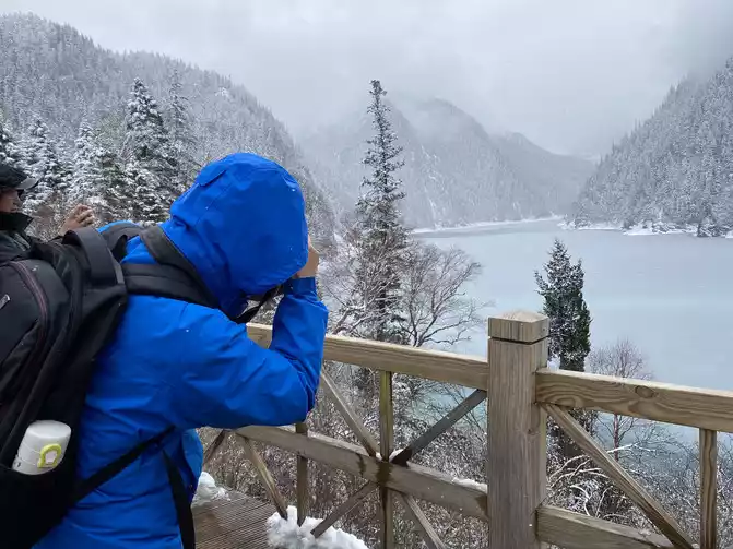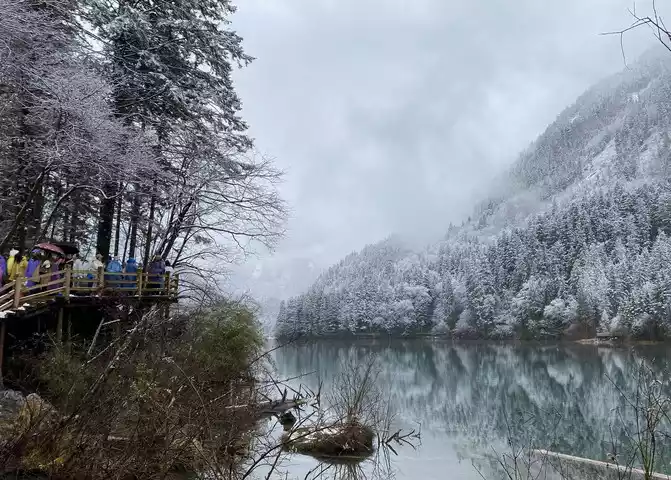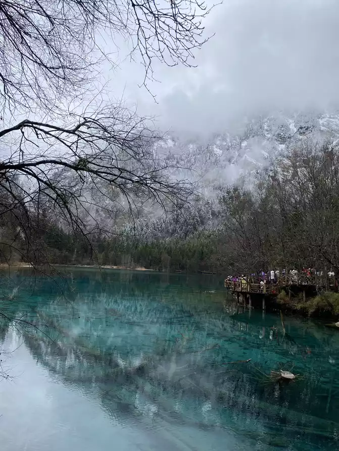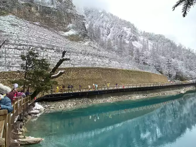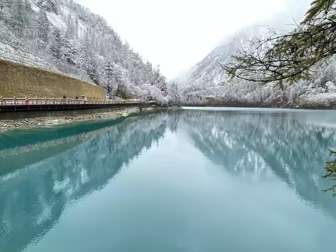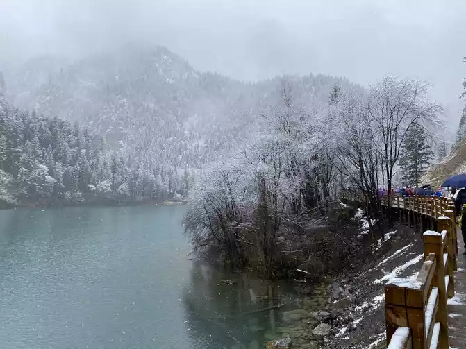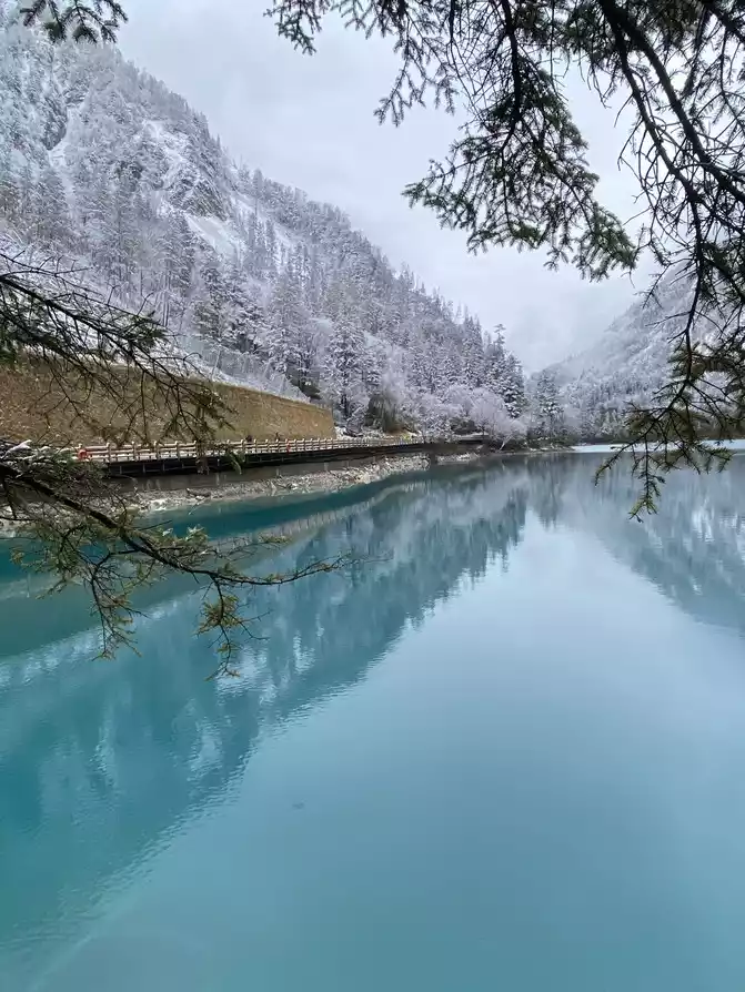 Jiuzhaigou Scenic Area is relatively mature, and its tour plank road is very well built. Therefore, we who walk in the snow can enjoy the scenery and walk with peace of mind.