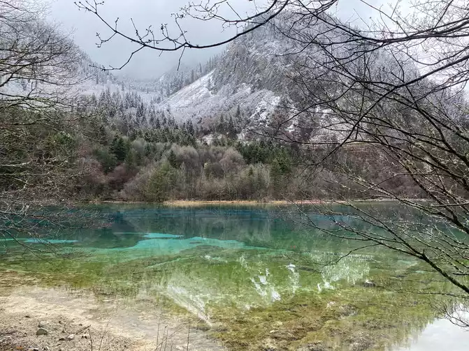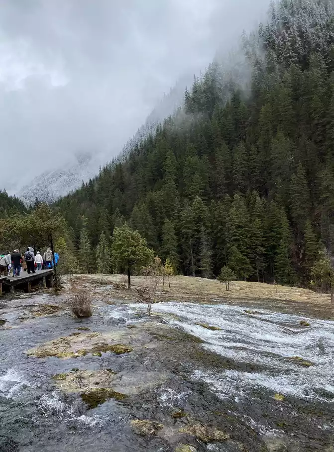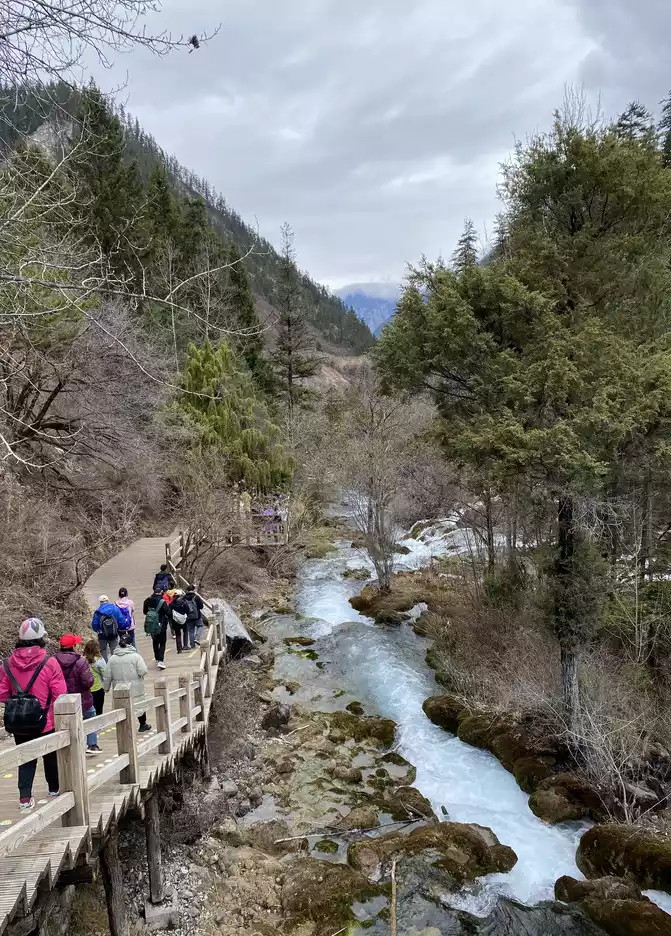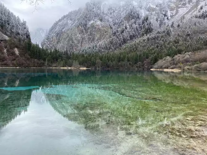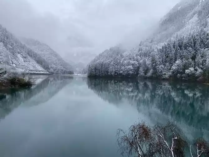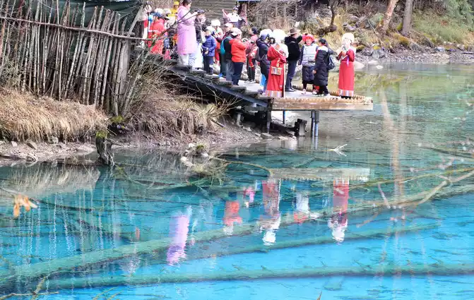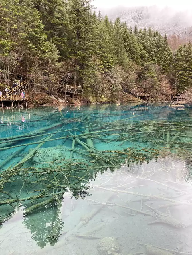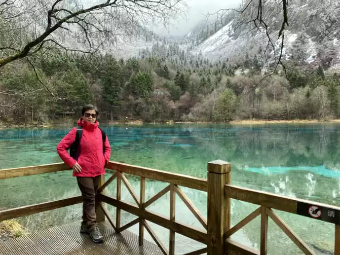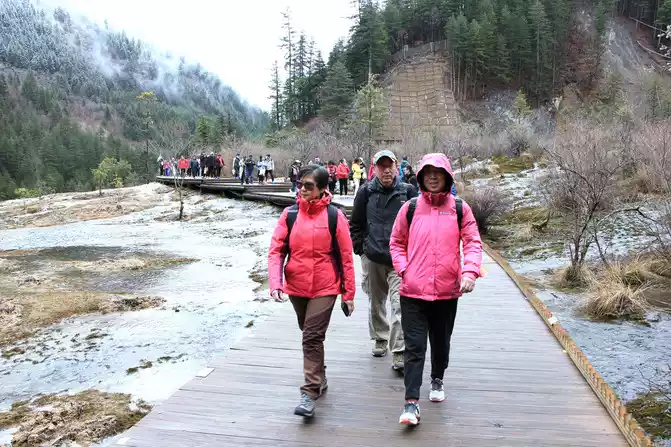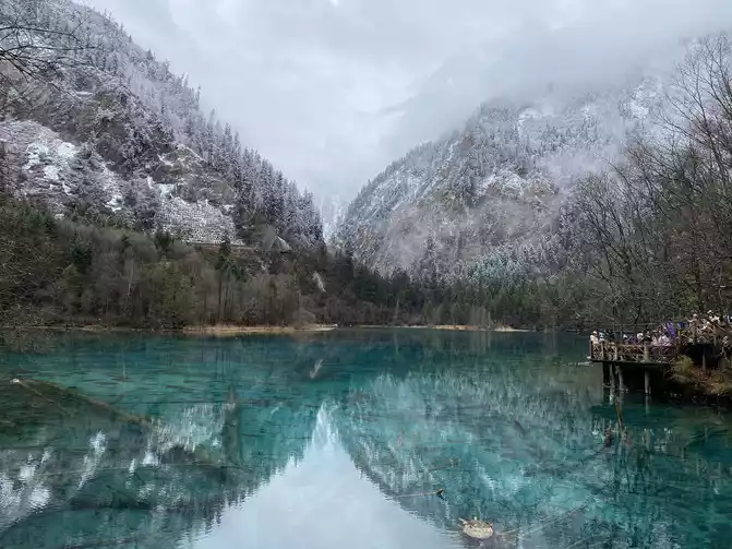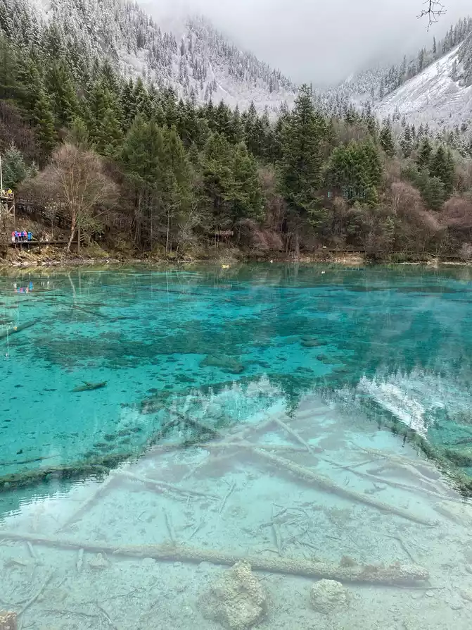 Jiuzhaigou Scenic Area is relatively mature, and its tour plank road is very well built. Therefore, we who walk in the snow can enjoy the scenery and walk with peace of mind.