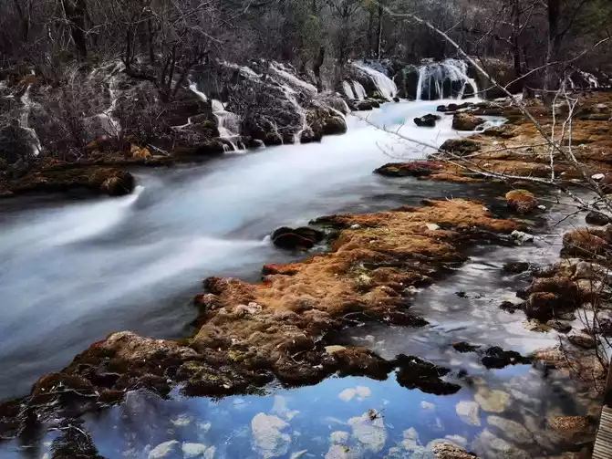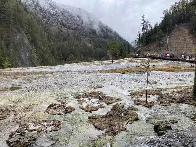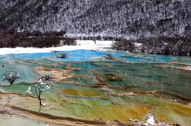 The colorful pool group covers an area of 21,000 square meters and has 693 color pools, which is the largest group of colorful pools in Huanglonggou, and it is also the largest in the world today. The highest open-air travertine pool group. Today is destined to not see the grand lottery pool group.