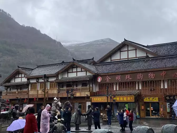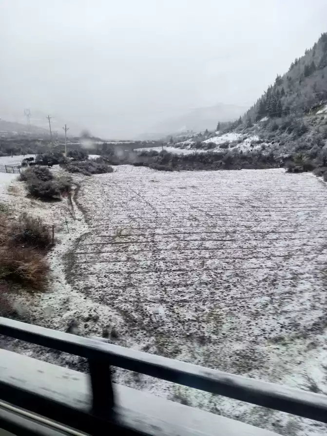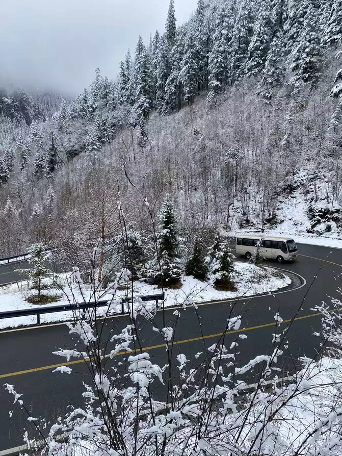 At about 17:40, there was already heavy snow outside the car, and today we set off from the morning to experience the cloudy days in Chengdu, the heavy rain in the Dujiangyan Scenic Area, the misty rain in the ancient city of Guanxian County, the rain in Wenchuan County, the sunny days in Mao County, and the rain and snow in Songpan.