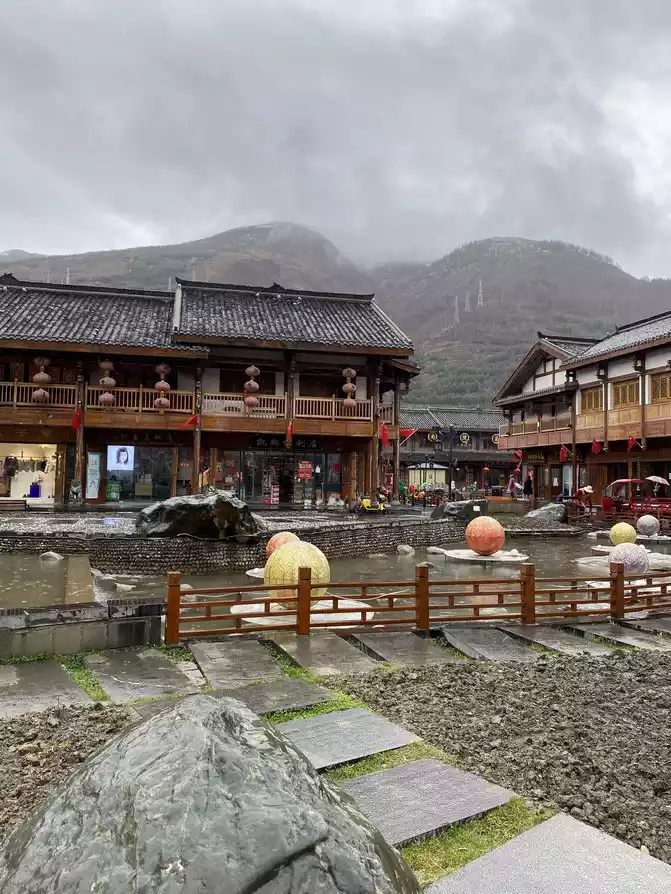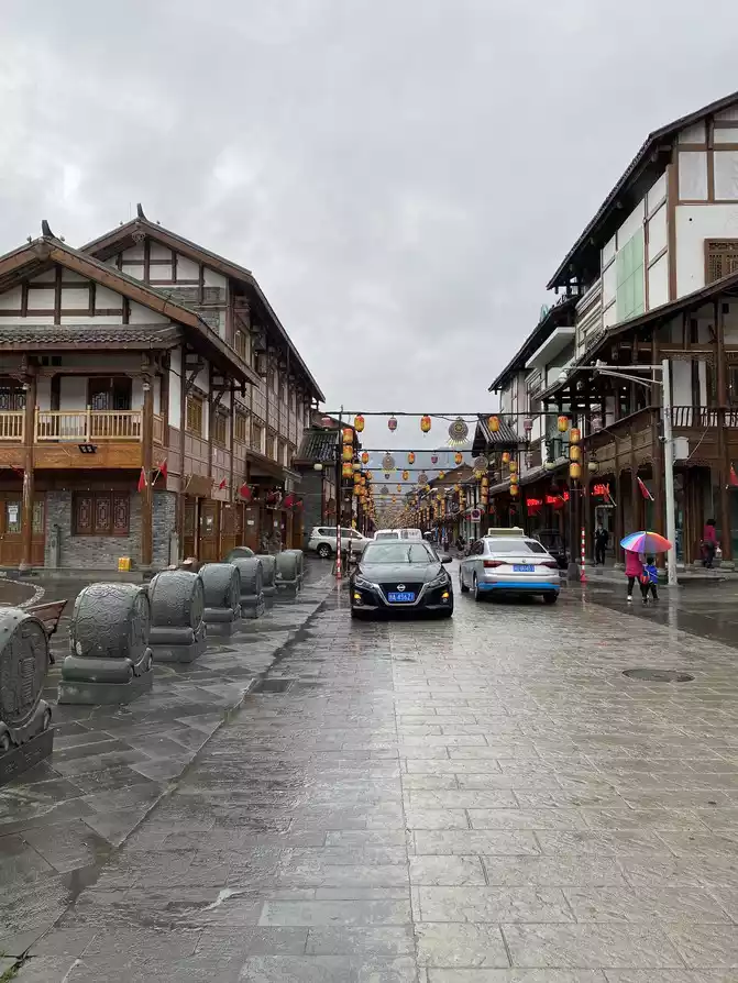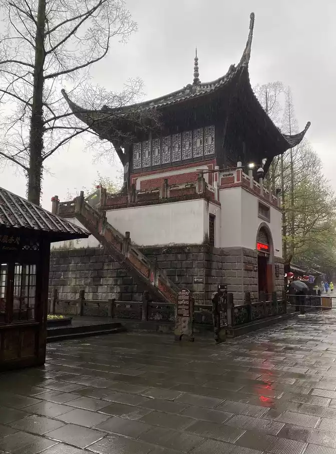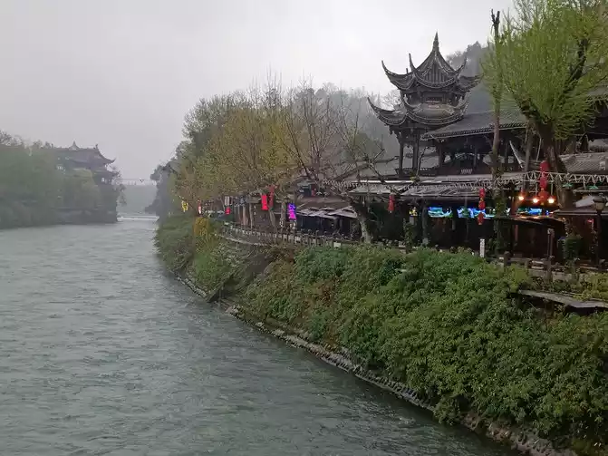 the ancient city of Guanxian County in the rain is adjacent to the Dujiangyan Scenic Area.