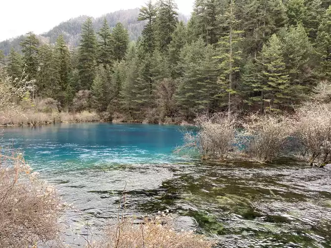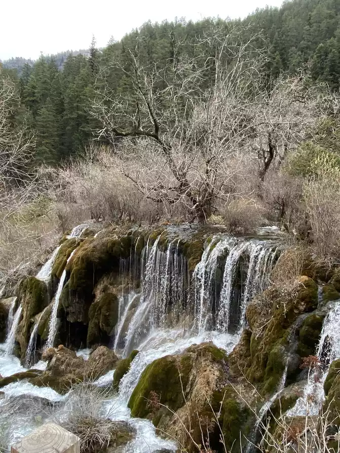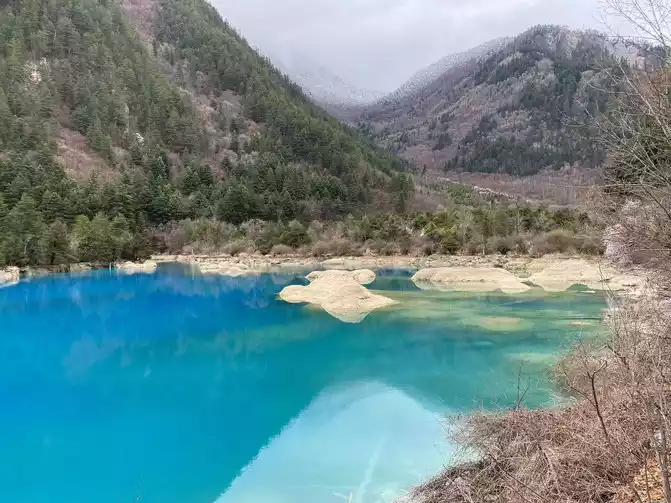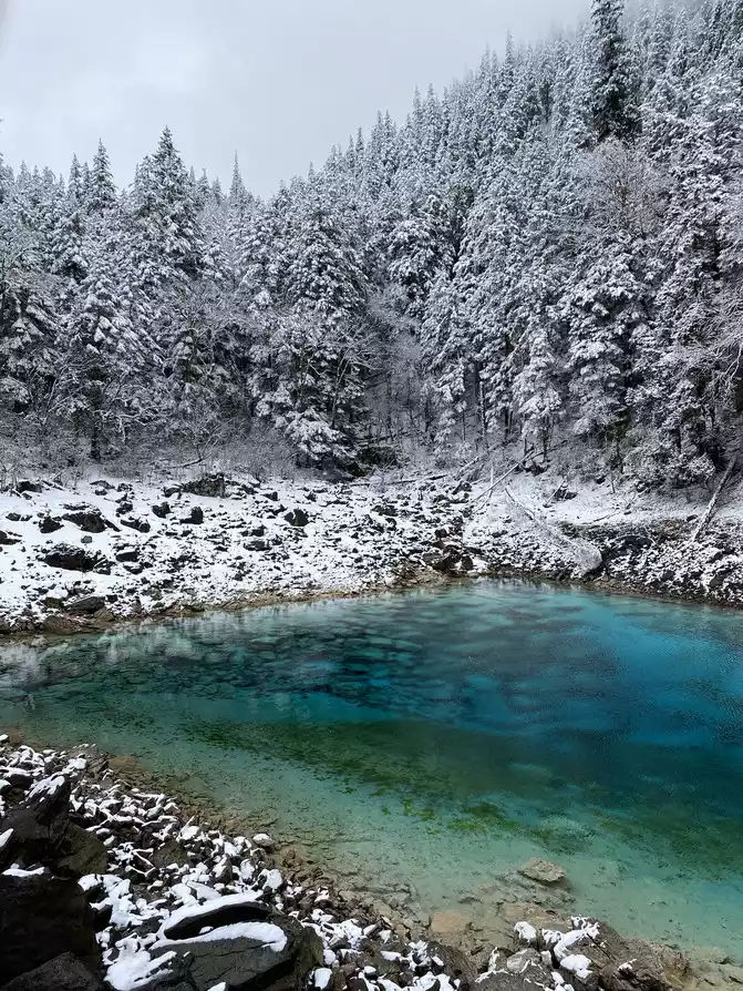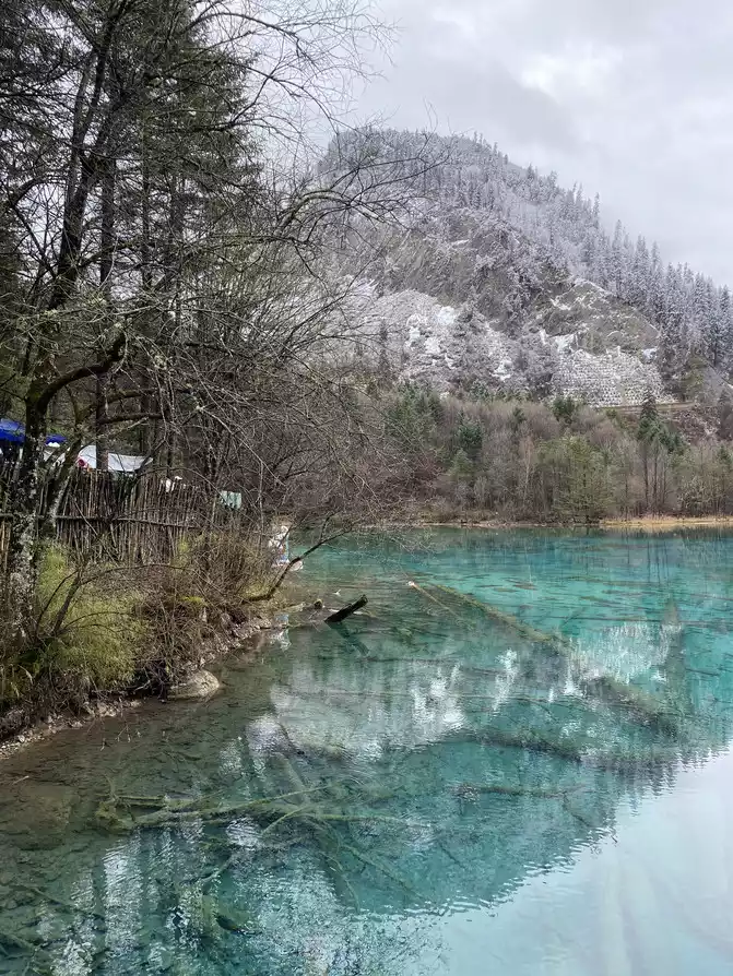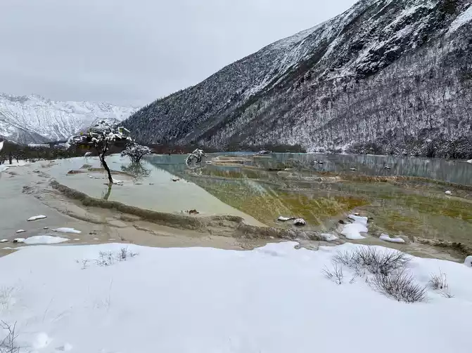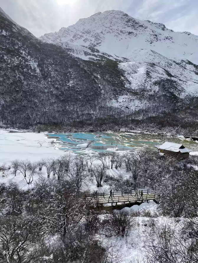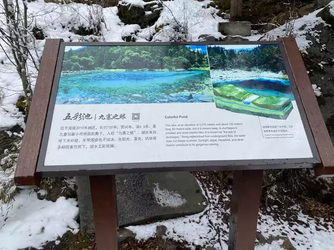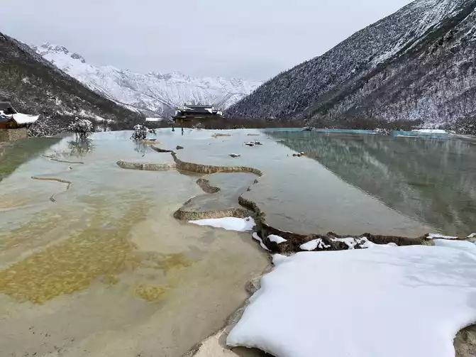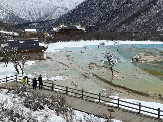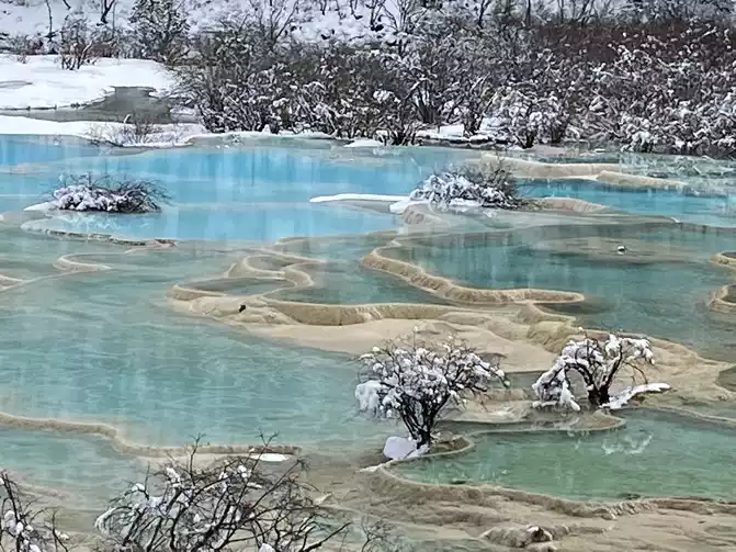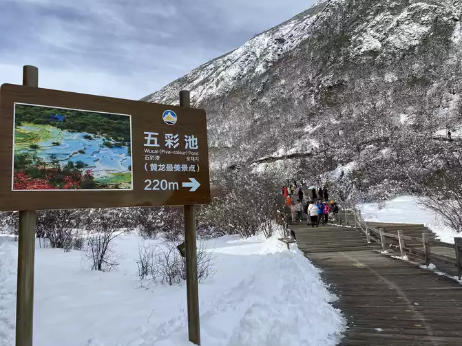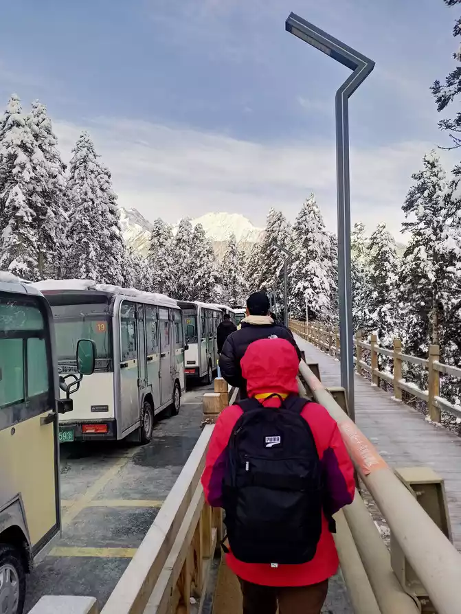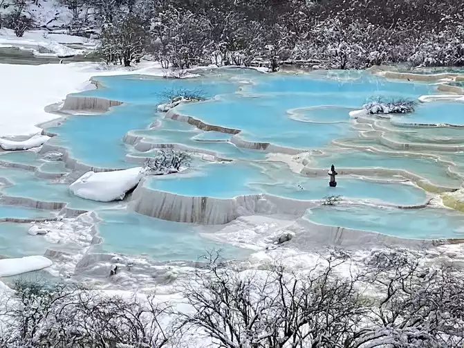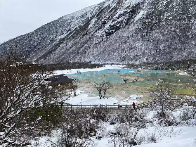 In order to reduce the difficulty of walking caused by ice and snow, we chose to take the scenic sightseeing bus (20 yuan/person) to visit the colorful pond, the essence of Huanglong Scenic Area.