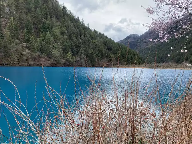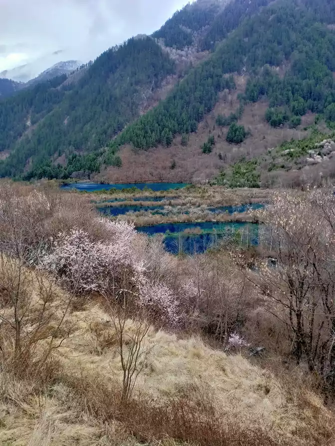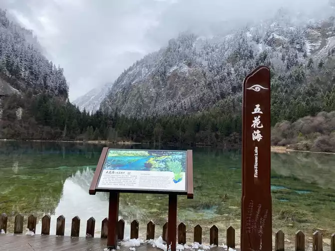 When we reached the Sea of Five Flowers, the sky was beautiful and the snow stopped. Although the sky is still cloudy, the sea of pork flowers is still breathtakingly beautiful!