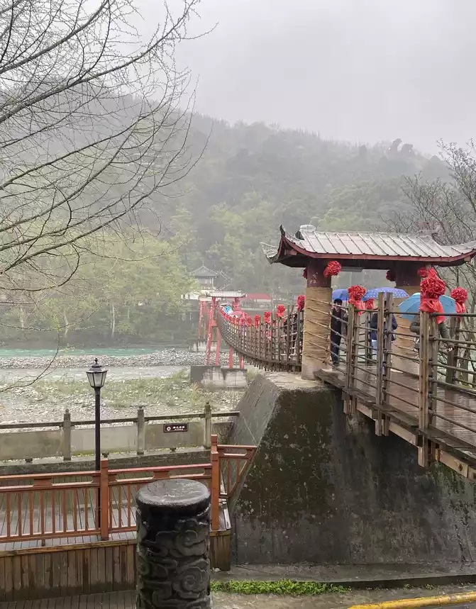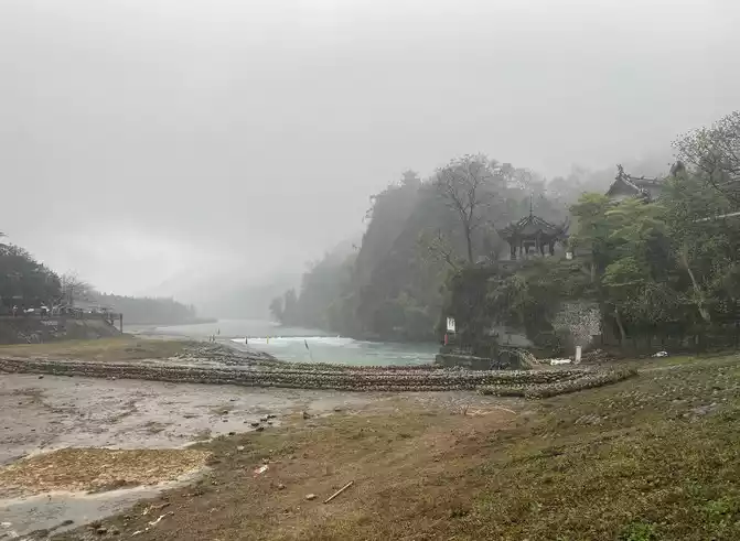 At the fish mouth of Dujiangyan Scenic Area, the sky was pouring heavy rain, and the rain gradually became lighter when it passed through Guanqiao and the ancient city of Guanxian County in Dujiangyan Scenic Area. However, when passing through Aba Wenchuan, the rain has gradually stopped, and the mountains on both sides of the road are surrounded by clouds and mist, and the scenery between the mountains and rivers is pleasant.