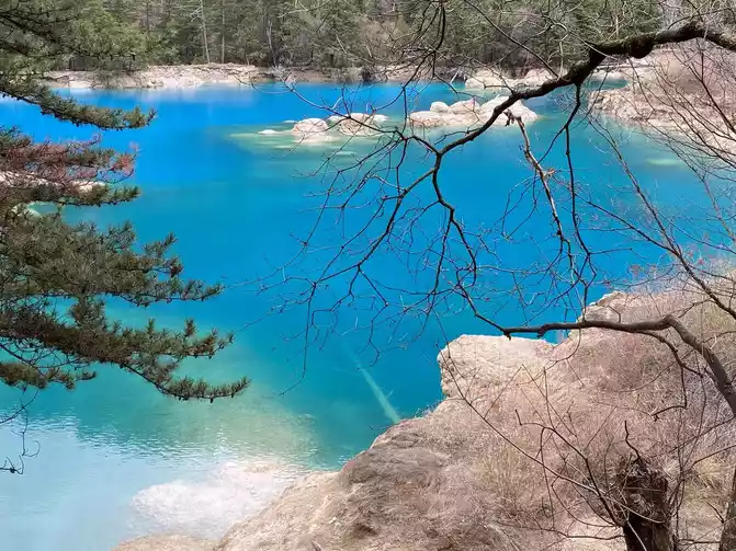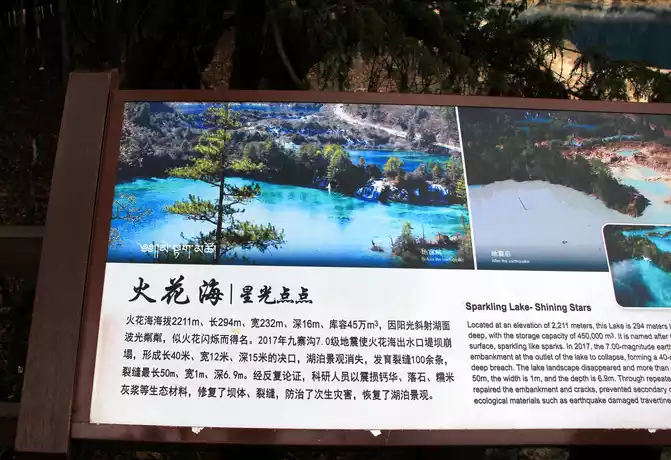 In the 8.8 earthquake, the embankment of the Spark Sea outlet collapsed, and the lake landscape disappeared. The current landscape has been restored after restoration.