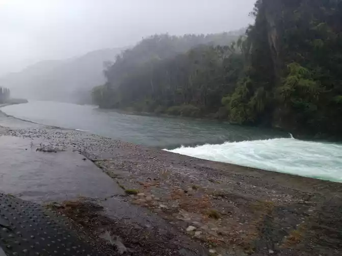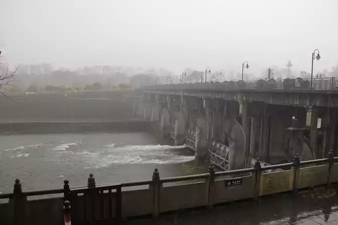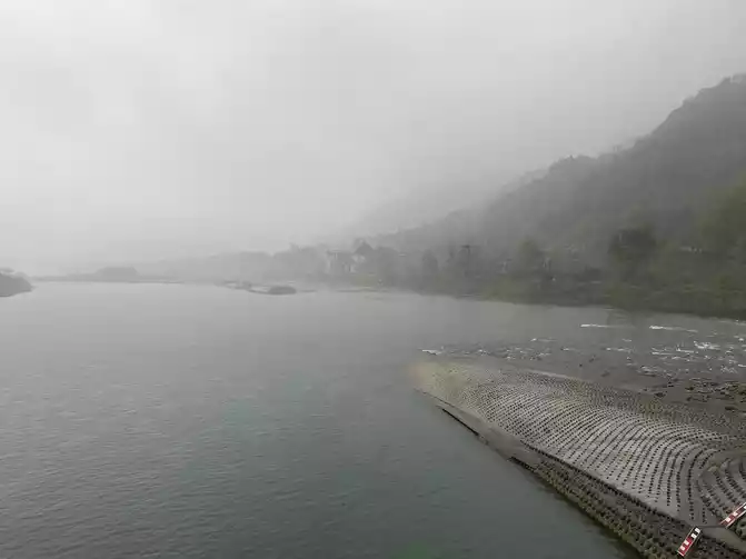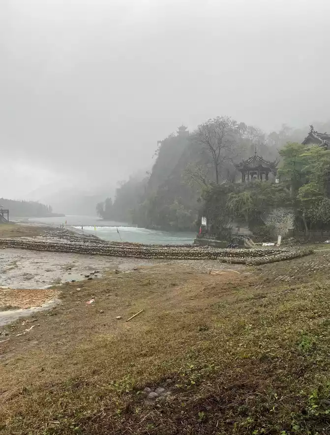 the river gate outside the Minjiang River at the Yuzui watershed! At this time, it was about 9:00, and it was pouring rain and visibility was extremely low.