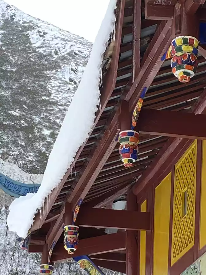 Huanglongzhong Temple in Huanglonggou was also almost covered by yesterday's heavy snow.