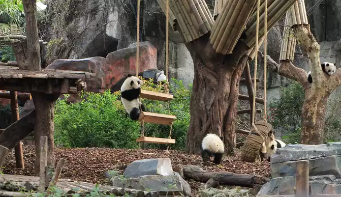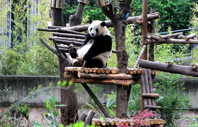 Chengdu Giant Panda Breeding Research Base, the environment created for giant pandas is beautiful, comfortable and livable, and it is a paradise for giant pandas!