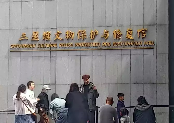 After lunch, we arrived at the Sanxingdui Museum, which laid the foundation stone in August 1992 and was completed and opened in October 1997, located in the northeast corner of the Sanxingdui site, a national key cultural relics protection unit, on the west duck river of Guanghan City, 40 kilometers south of Chengdu. It is a modern thematic site museum in China.