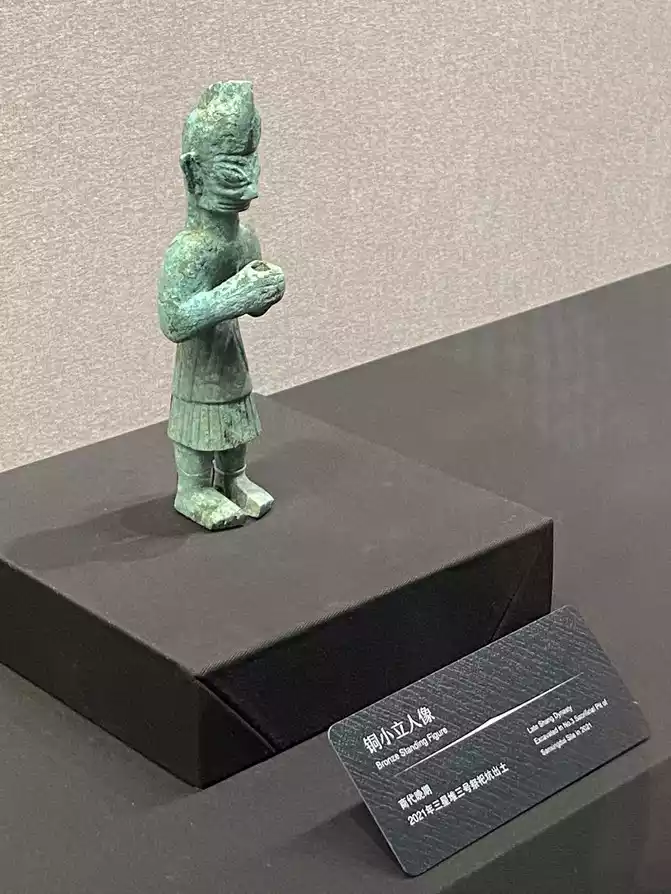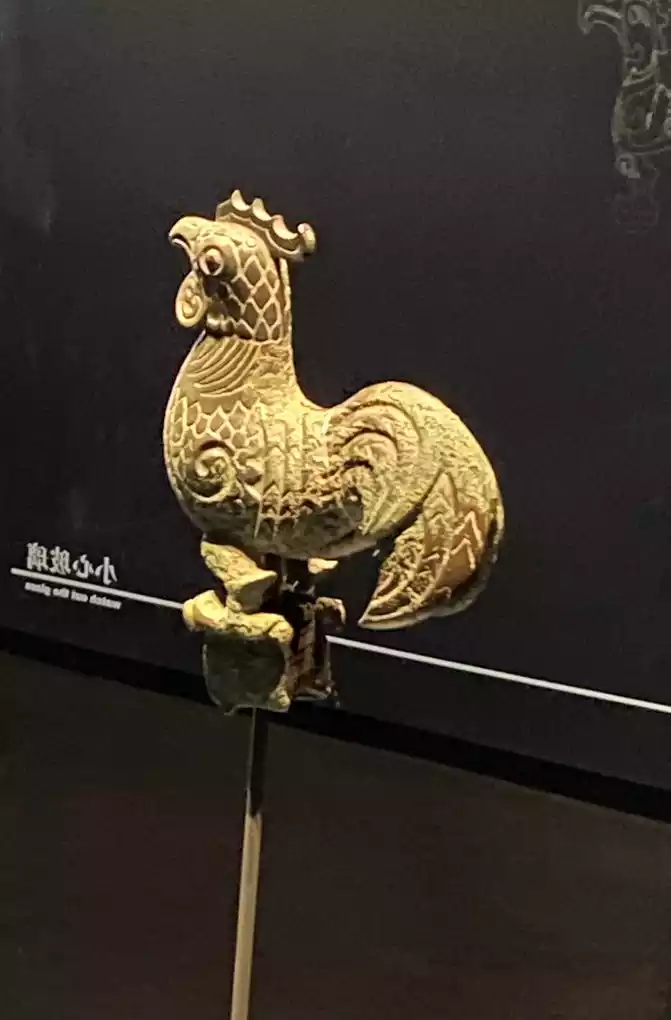 the Shang Bronze Chicken in the Bronze Pavilion! The copper chicken is round and plump, with its neck raised and its head raised, which is extremely vivid. Because its production style is quite realistic, it is in stark contrast to many exaggerated cultural relics in Sanxingdui, so it is also one of the most representative works of Sanxingdui.