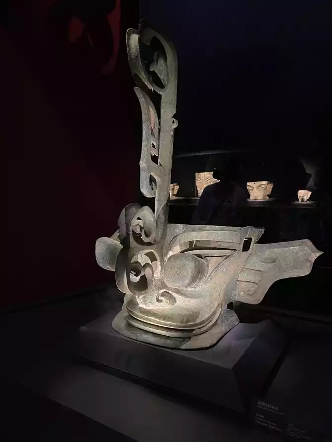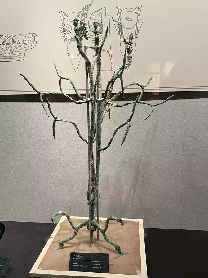The Shang Bronze Sacred Tree in the Complex! A total of 6 bronze sacred trees have been excavated at the Sanxingdui site, the most complete of which is the "No. 1 Sacred Tree" unearthed in the No. 2 Sacrificial Pit in 1986, which is 3.96 meters high and is the largest single bronze cultural relic in China. It is a representative of the ancient Shu civilization, which can be described as the culmination of the bronze casting process, and is a visual portrayal of the mythological consciousness of the ancient Shu ancestors who communicated with each other, and was included in the "First Batch of Cultural Relics Prohibited from Going Abroad (Border) Exhibition Catalogue" by the State Administration of Cultural Heritage in January 2002.