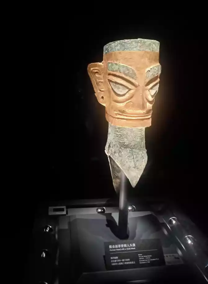 bronze head of the merchant wearing a gold mask in the Bronze Hall!