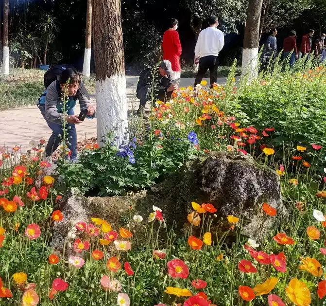 The cultural park is full of blooming flowers, with a warm spring!