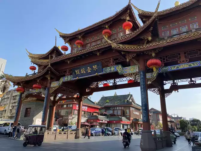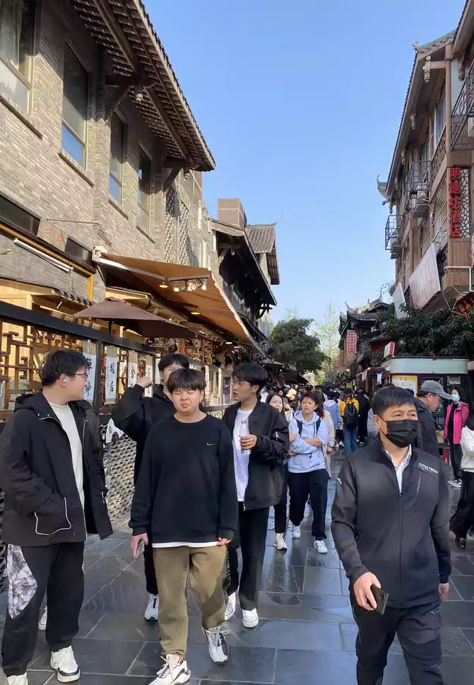 out of the cultural park to the archway of Qintai Road, I checked the map of AutoNavi and found that Kuanzhai Alley was nearby. So we also had a CityWalk in Chengdu and walked to Kuanzhai Alley.