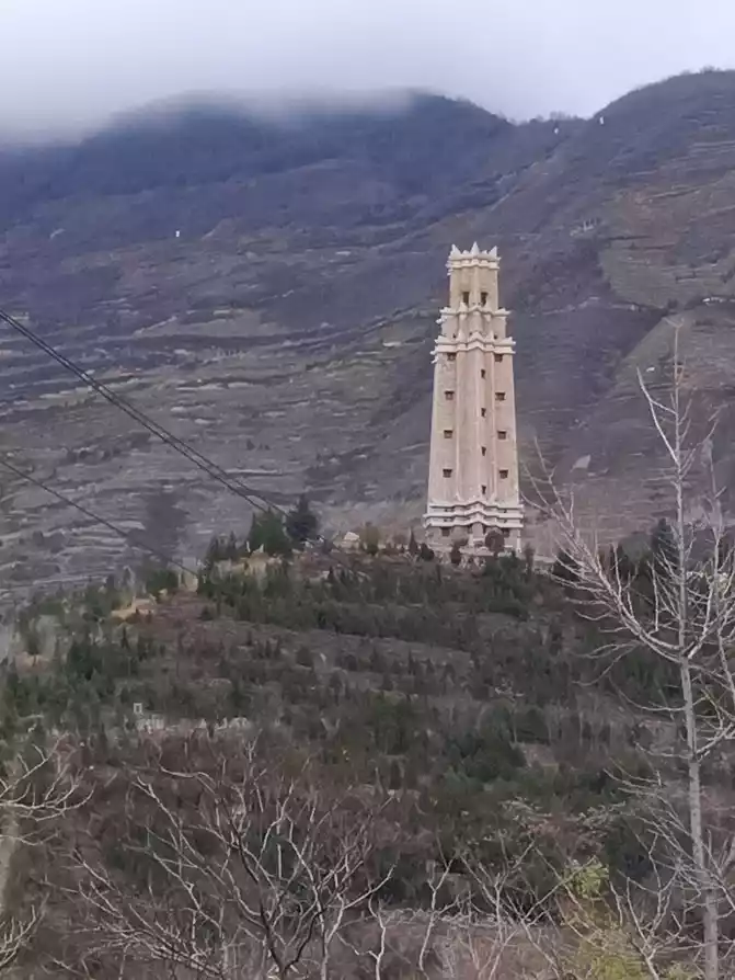 Mao County, Aba Prefecture, with an average altitude of more than 1,600 meters, is the main settlement of the Qiang people in China. The tour guide Dawa also introduced the three treasures of the Qiang people, namely Qiang embroidery, Qiang flute and Qiang diao. At this time, she pointed to the distance outside the car window and told us that the watchtower faintly visible in the mountains was the treasure of Qiang architecture - the Qiang watchtower!