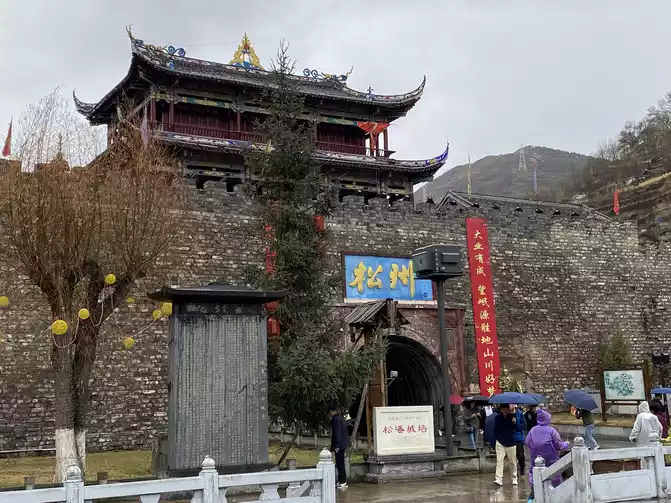 At about 14:55, we arrived at Jin'an Town, Songpan County, and visited the national key cultural relics protection unit - Songpan City Wall and Songzhou Ancient City Scenic Area!