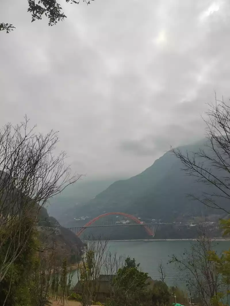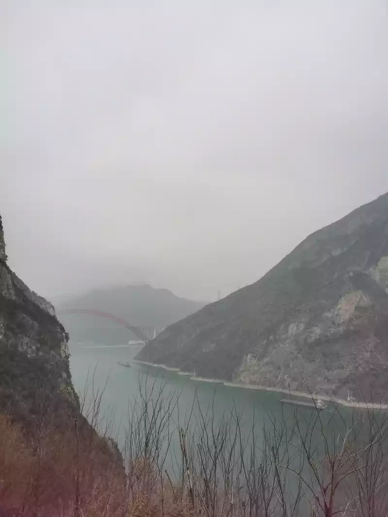 After seeing Zhongwudang, go down the mountain and go directly to Sandouping, where the Three Gorges Dam is located, you can't see the dam directly on the road, it has been fenced off, don't buy tickets for the Three Gorges Dam Scenic Area, basically you can't see it, we passed by a parking point, climbed to a high place, you can overlook the dam, but today it's cloudy, the visibility is not high, you can't really see it.