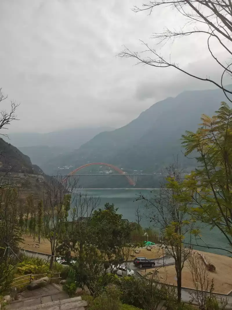 Scenery Successfully arrived at Wushan County at noon, first went to the Internet celebrity Zhuzhi Village, across the river from the county seat, currently under construction and maintenance, Zhuzhi Village looks at Wushan County, the angle is good.