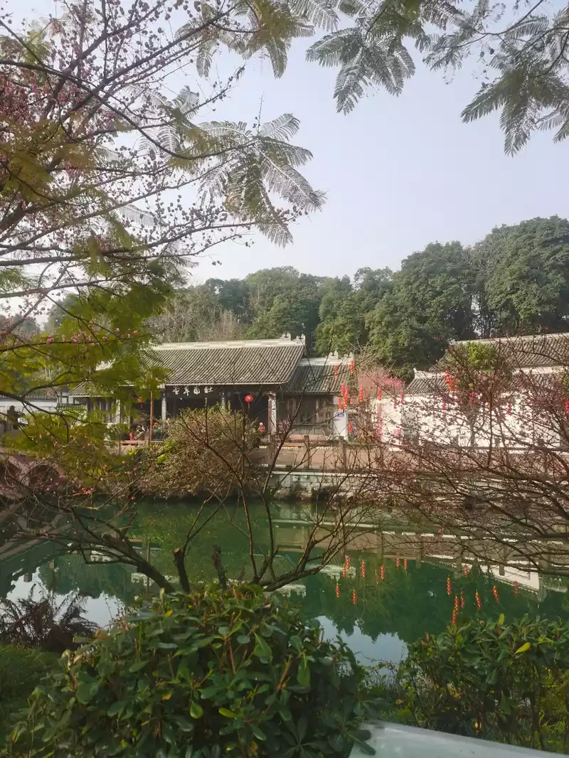 In view of the experience of Kuanzhai Alley yesterday, I took a taxi to Huanhuaxi Park early this morning to see the plum blossoms, there were not many people in the morning, I wandered around slowly, I felt good, I passed by Du Fu's thatched cottage, there were many people, I didn't go in, I continued to visit Huanhuaxi, find a teahouse, drink tea, rest, bask in the sun, and Bashi.