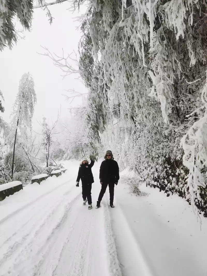 the way to the gate of the scenic spot on the top of the mountain, the scenic spot is closed because of the snow, it cannot be entered, but it does not prevent us from enjoying the snow, Playing in the snow, for southerners, such heavy snow is still relatively rare.