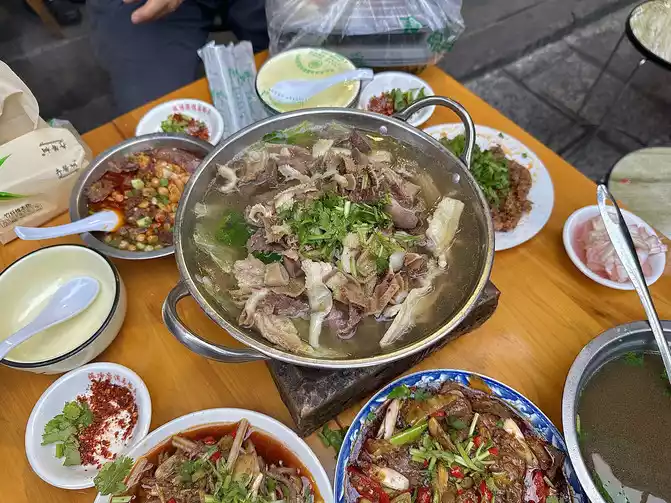 (On the picture, they are mixed hot pot + braised blood + stir-fried shredded beef + fried beef liver + steamed beef)