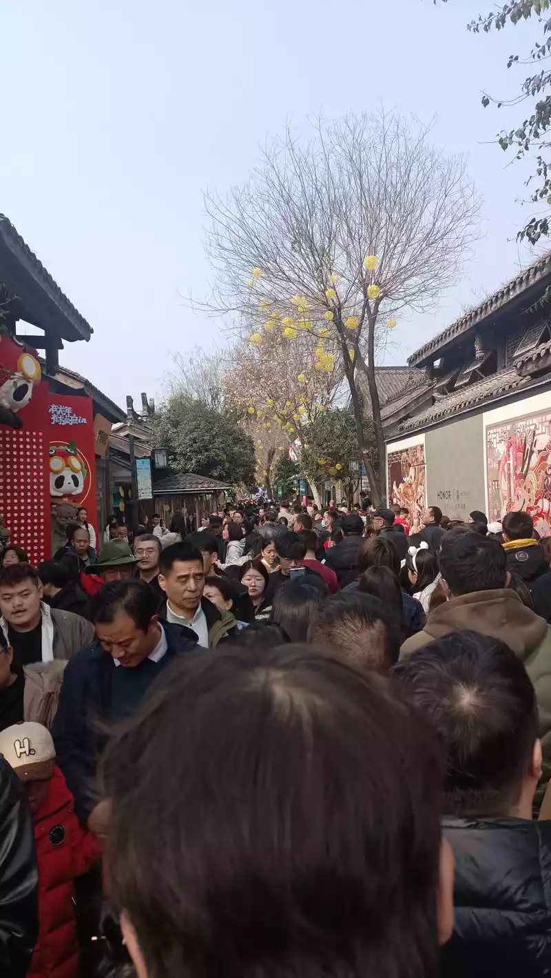On the second day of the Lunar New Year, I arrived at Chengdu West Station at 8 a.m. and went to the first stop - Panda Base. The first time I came to Chengdu, I had the impression that the Shu road was difficult, but the city was a flat and wide avenue, and the wide feeling was that the city was very big. Bought souvenirs and flower refrigerator magnets on the car to the panda base. The panda base is very large, built on the mountain, it is very laborious to walk, the panda rooms are far apart, plus there are many people, there are not many pandas seen, and the experience is not very good.