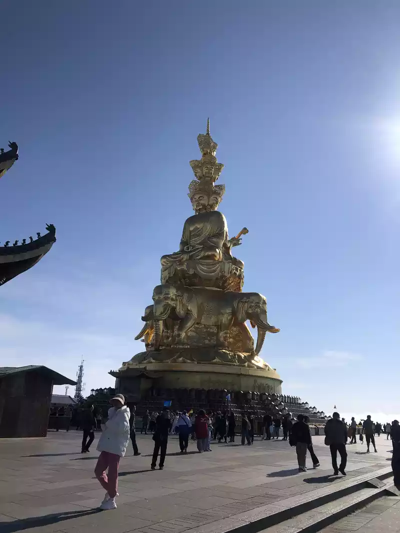 A comfortable day started with a luxury bus, this time I changed the group, and took a luxury bus! Spacious and comfortable. It takes 2 hours to get to Emei, today I climbed the Golden Peak, made a sightseeing car up the mountain, and circled the mountain road all the way, for an hour, didn't that sentence say: Emei is not a mountain, it is a group of mountains. Arrive at the cable car hub and queue for three hours! Precious three hours, during which I saw fights, bickering, jumping the queue, and the queue was not lonely. Accidentally, there was an episode, I saw a plaque - Southwest Jiaotong University Emei Campus, I checked it on the Internet, it seems that in 2022, it has been abandoned, thinking that the students who go to school here are also very happy, the national 5A-level scenic spot campus, near the water tower~