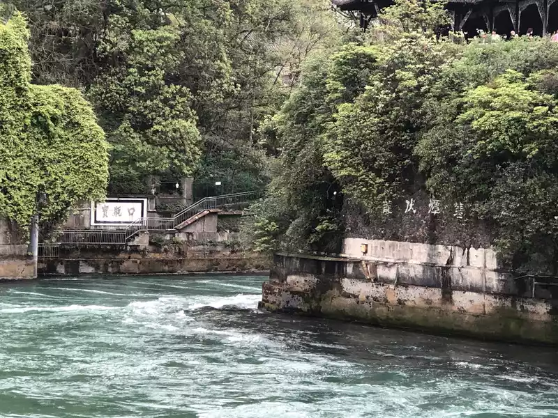 Themouth of the treasure bottle, located at the foot of the pile and the throat of the Neijiang River, is a 20-meter-wide, 40-meter-high, and 80-meter-long opening excavated by Li Bing that year, shaped like a bottleneck, so it is called the "mouth of the treasure bottle". The Neijiang water rushes here and is supported head-on from the pile, forming a water blockage and whirlpool, making the water clearer, and then entering. During the flood period, it forced the inner river to prevent a large number of pours into the narrow mouth of the treasure vase, so it had to be blocked with the whirlpool and discharged from the flying sand weir to the outer river, playing the role of a control gate to ensure the safety of the Chengdu Plain.